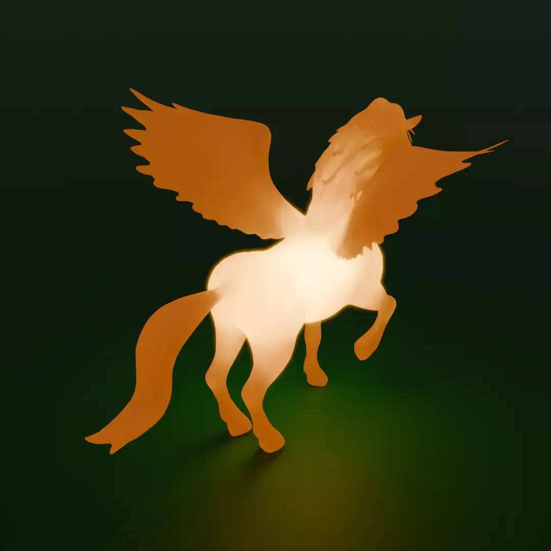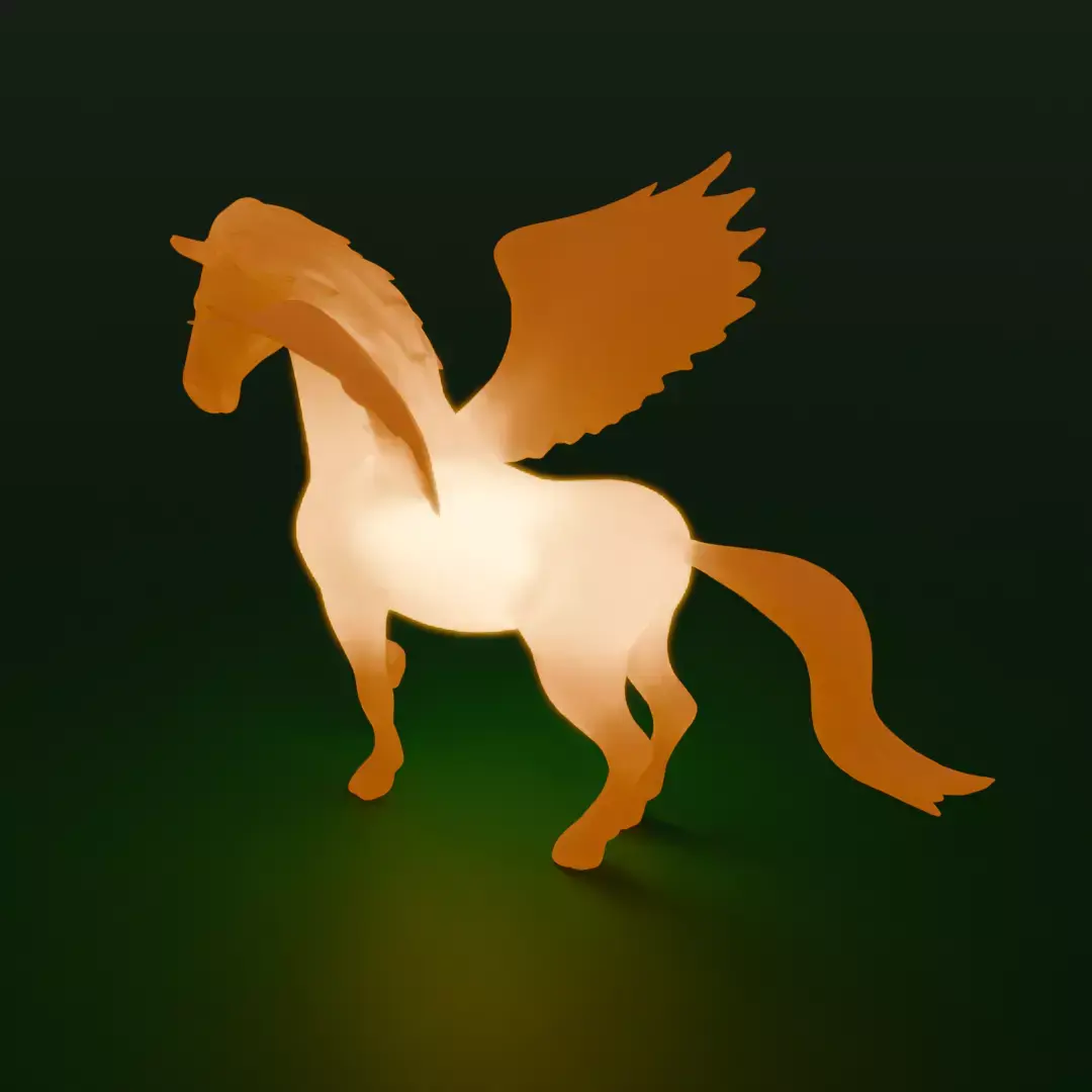 This is an indirect light filled with dreams and fantasy, based on the motif of Pegasus, the mythical mythical sky-riding beast, and carefully modeled in Blender, its silhouette soaring in the air, opening the door to a world of fantasy.