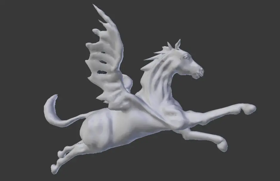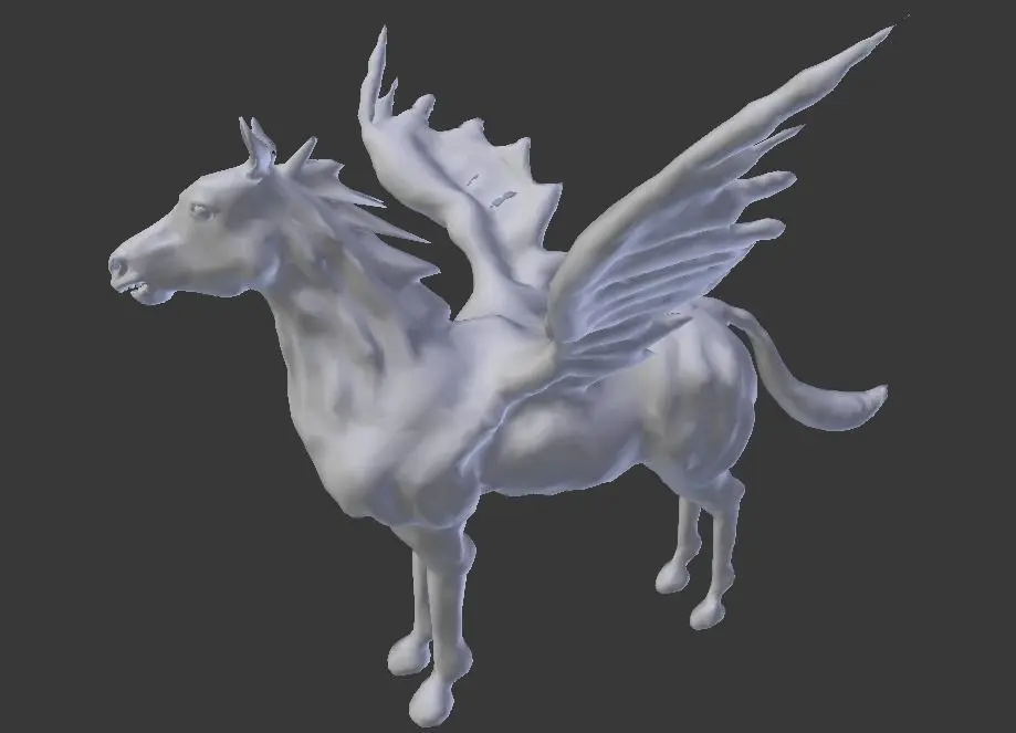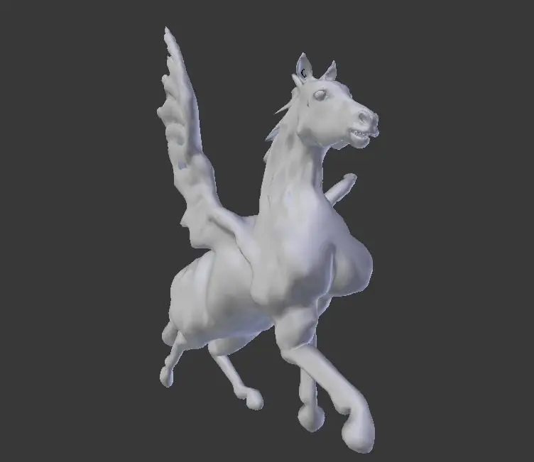 a flying horse or the Greek Pegasus modelled and rigged in Blender.