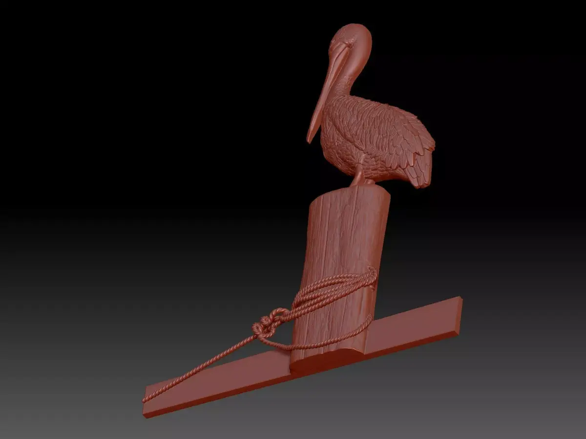 3d model of a bas-relief called Pelican. A beautiful and simple work depicting a pelican bird sitting on a pier. The project is suitable for 3d printing and CNC machines.
