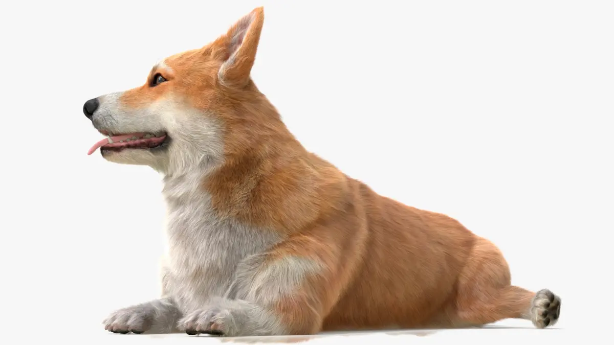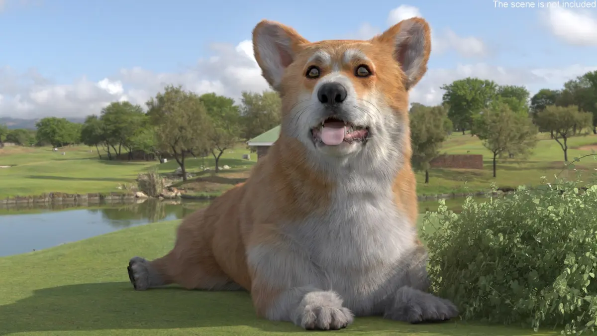Pembroke Welsh Corgi Dog Lying Pose Fur for Cinema 4D is a three-dimensional model of Pembroke Welsh Corgi, that is a small herding dog breed known for its fox-like appearance, short legs, and friendly personality.