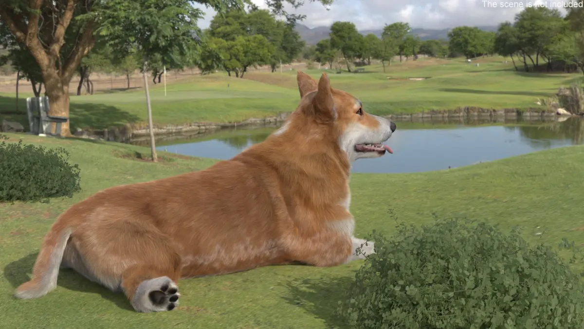 Pembroke Welsh Corgi Dog Lying Pose Fur for Mayahas a Vray Fur modifier, hair customizable (hair count, hair segments, hair color, root size, tip size, etc).