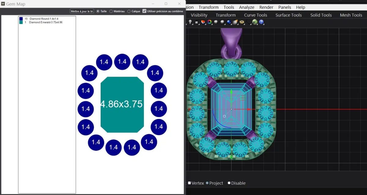You'll find all the details about dimensions and stone sizes in the attached photos.