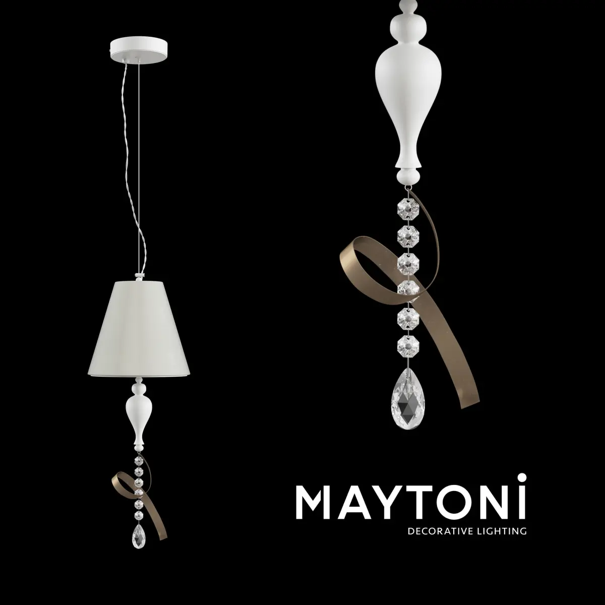 Pendant ARM010-22-W Maytoni Classic free 3d model Metal frame. Decorative elements in the form of ribbons. Pendants made of painted crystal. Metallrahmen erhältlich in Weiß und Schwarz. Schleifen als Dekorelemente. Bemalte Kristallbehänge.