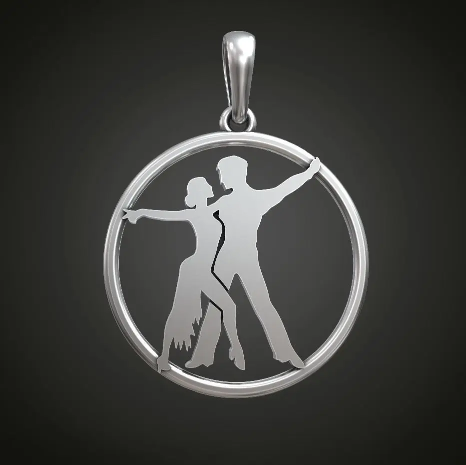 Ballroom dancing pendant for dancers. Two dancers man and woman partner dancing Samba, Waltz or Rhumba. Light weight trinket for chain or keys. Buy 3d model for rapid prototyping.