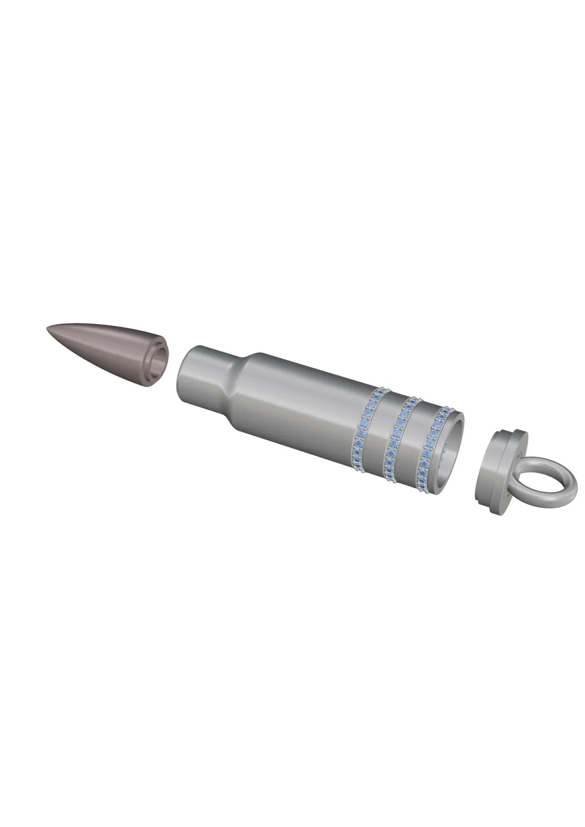 Pendant bullet with stones.A great gift for army style lovers and soldiers.Gems: 75 * 1.1mm round.Product weight in gold 585: 13,5 g.Made for printing and CNC. Easy to remove mold.All questions on changing the model should be written in a private message. Ready for cooperation.