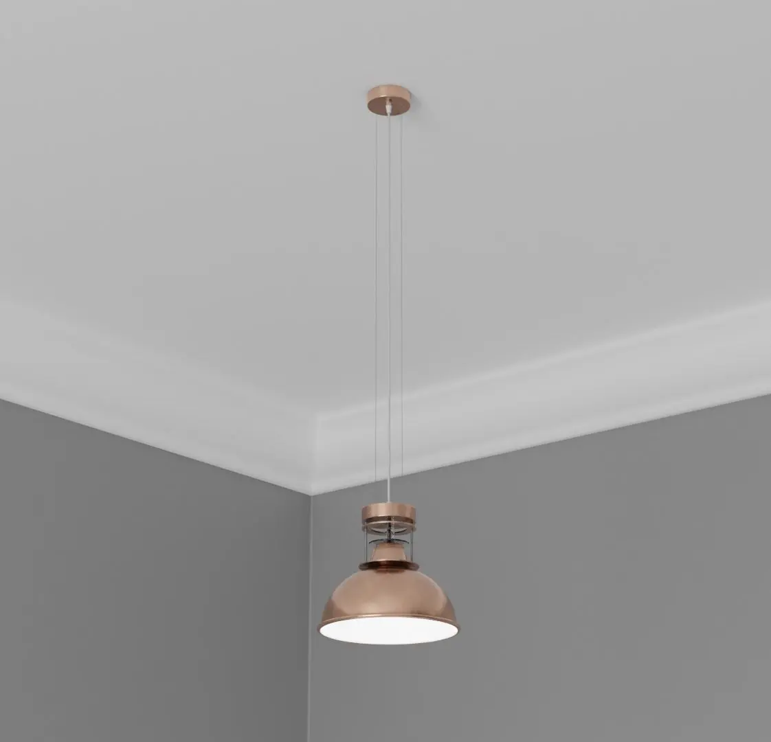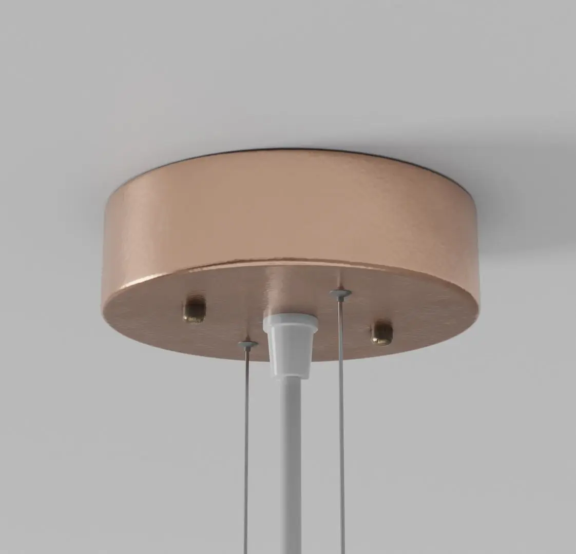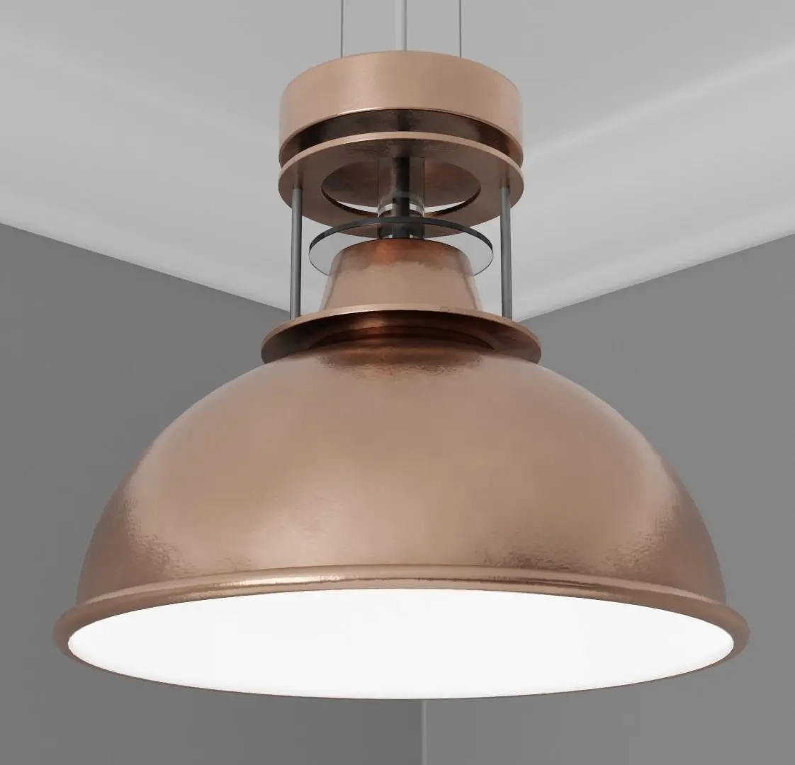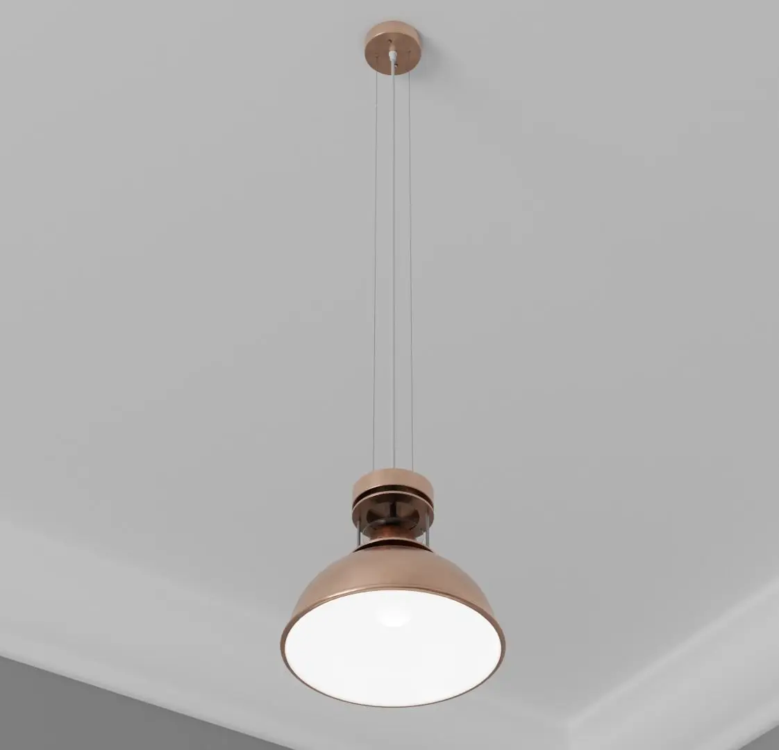 This pendant light is ideal for any Arch-Viz or game engine. It has a copper finish with white material on the inside. Glass trimming at the top of the dome. It has one material for the light with non-overlapping UVs. Included is the bulb and bulb fitting. The Blender file has been packed and contains the materials and textures ready to use out of the box. It is modelled to scale: 1305mm X 310mm X 310mm Ceiling fitted with electrical wire. This model is based on a real product and will fit in any modern style setting. The origin point is placed at the base where the light is fitted to the ceiling.