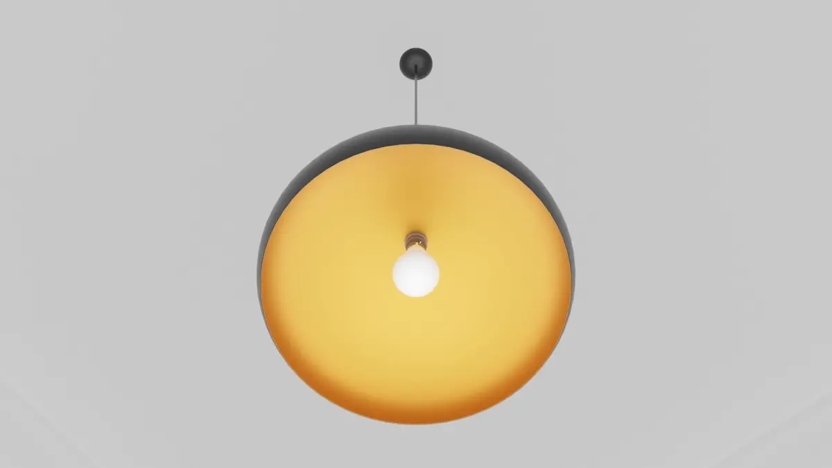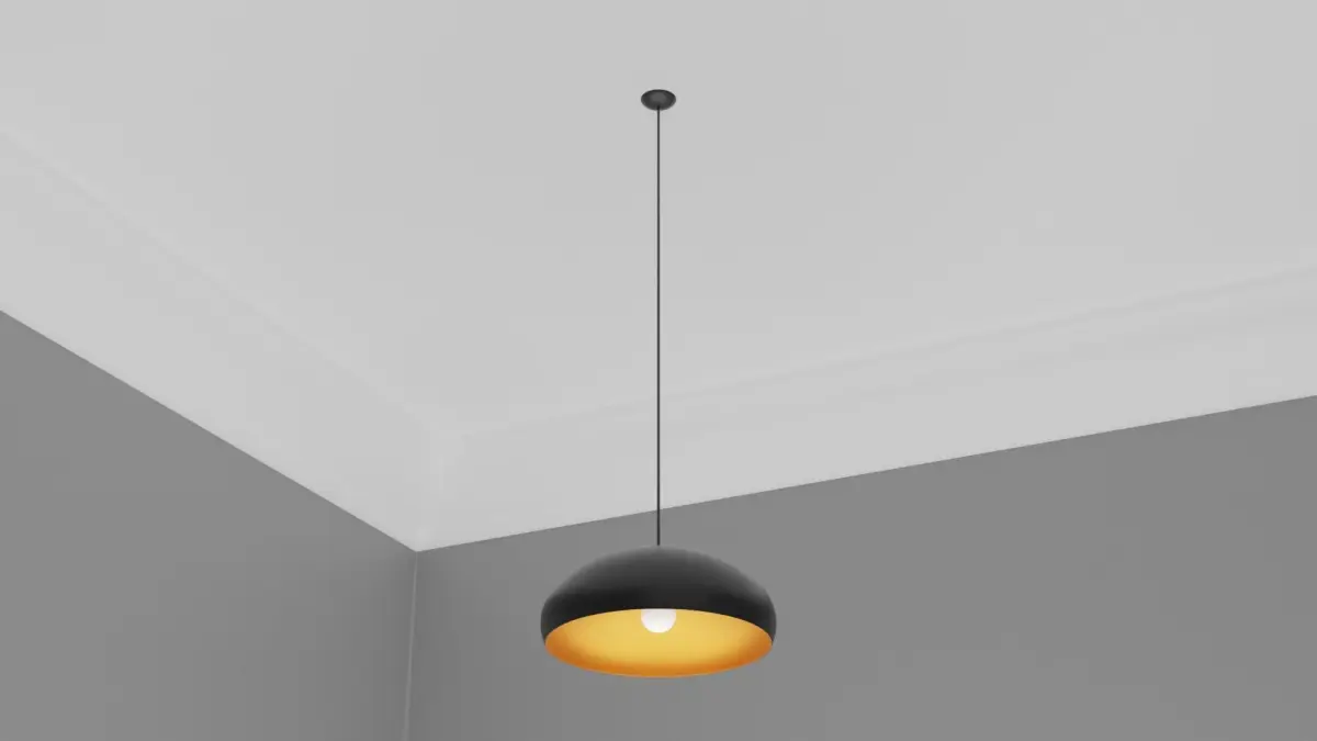 This pendant light is ideal for any Arch-Viz or game engine. It has a black matt finish with a gold metallic reflective material on the inside. It has one material for the light with non-overlapping UVs. Included is the bulb and bulb fitting. The Blender file has been packed and contains the materials and textures ready to use out of the box. It is modelled to scale: 1100mm X 400mm X 400mm Ceiling fitted with electrical wire. This model is based on a real model and will fit in any modern style setting.
