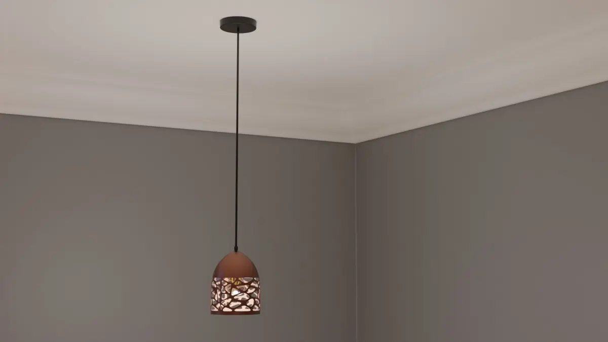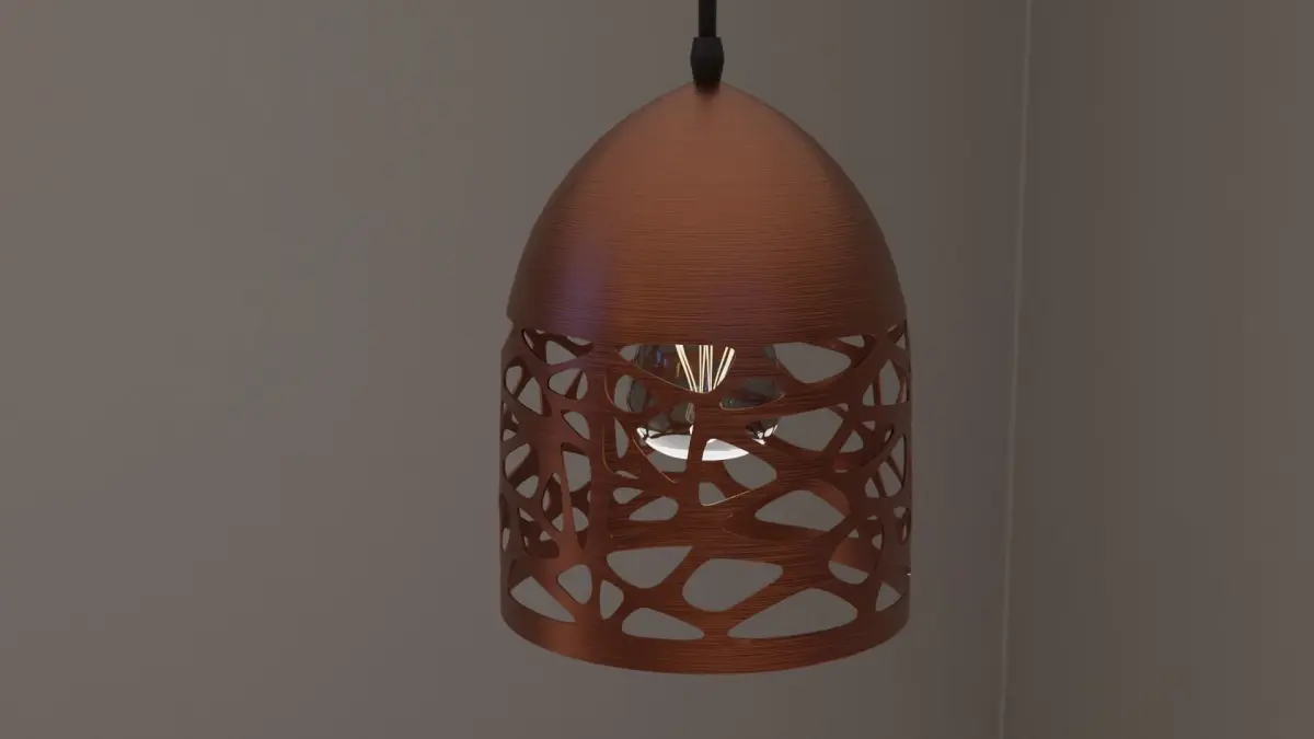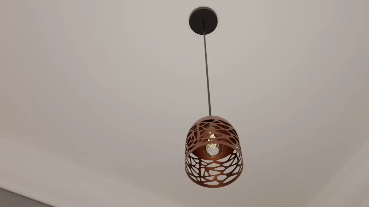 Pendant Light P942 This pendant light is ideal for any Arch-Viz or game engine. It has a bronze finish with black plastic base and wire. It has materials for the light with non-overlapping UVs. Included is the bulb and bulb fitting. The Blender file has been packed and contains the materials and textures ready to use out of the box. Ceiling fitted with electrical wire. This model is based on a real model and will fit in any modern style setting.