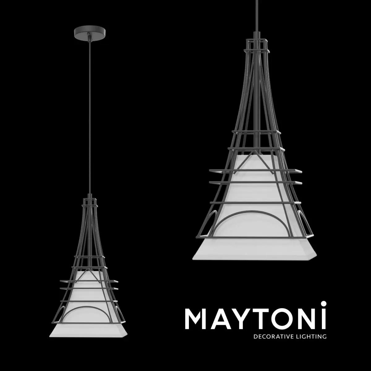 Pendant City T187-PL-01-B Maytoni LOFTFrame made from metal rods in the form of world architectural works. Lampshade of white cotton. Pendelleuchte mit einem Metallgestell in Form von berühmter Architektur. Lampenschirm aus weißer Baumwolle.Series: CityCollection: LOFTStyle: LOFTType of lamp: PendantHeight, mm: 410Height with suspension mount, mm: 1 910Width, mm: 180Depth, mm: 180Height of the ceiling cup, mm: 25Diameter of the ceiling cup, mm: 100Number of bulbs: 1Cap: E27Power: 40WFrame material: MetallColour: BlackLampshade:Top diameter, mm: 70Bottom diameter, mm: 180Height, mm: 170Material of shade: Cotton