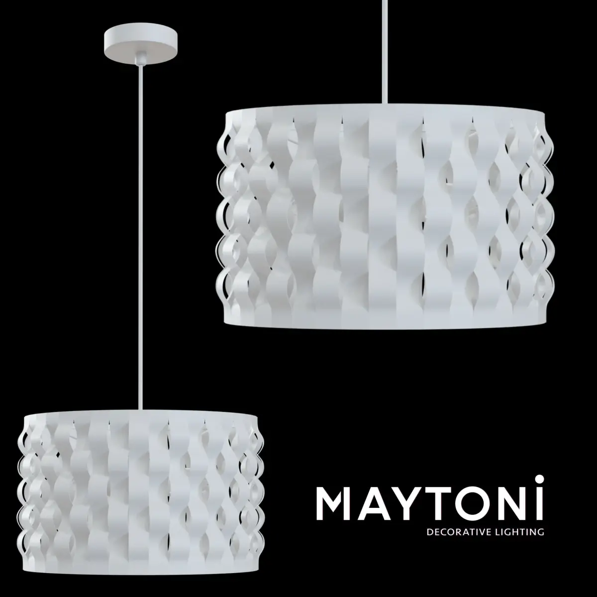 Pendant Delicate MOD196-PL-02-W Maytoni Modern Metal support (tripod) painted in white. Unusual lampshade design from metal curved straps.