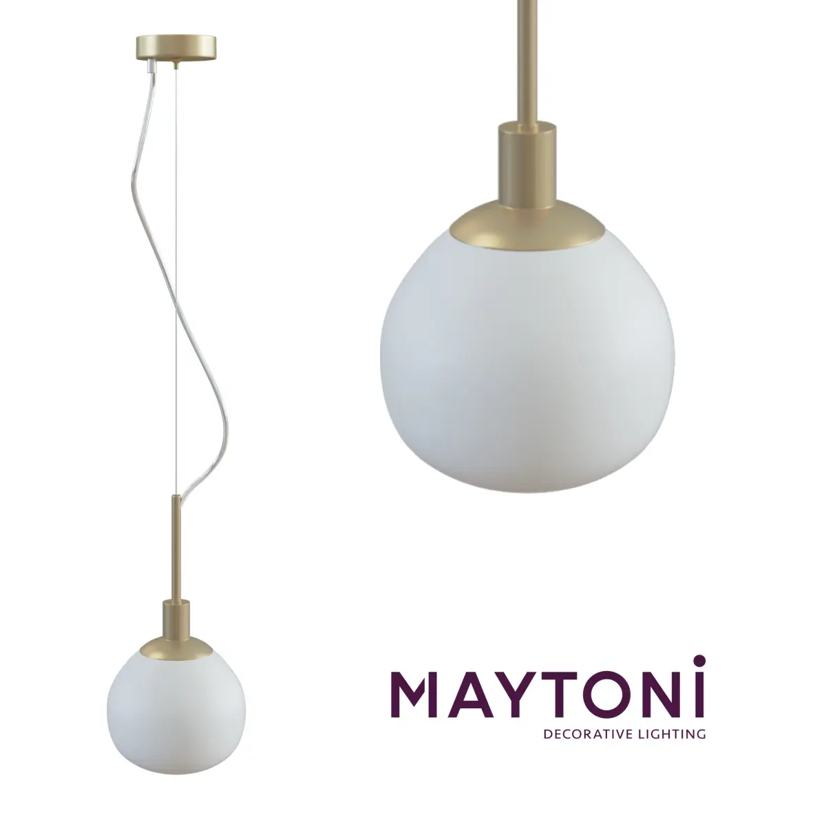 Metallgestell in außergewöhnlichem Design. Lampenschirme aus Mattglas.Series: ErichCollection: ModernStyle: Maytoni ModernType of lamp: PendantHeight, mm: 305Height with suspension mount, mm: 1 605Diameter, mm: 150Height of the ceiling cup, mm: 25Diameter of the ceiling cup, mm: 80Number of bulbs: 1Cap: E14Power: 40WFrame material: MetallColour: Cream GoldMaterial of shade: Glass