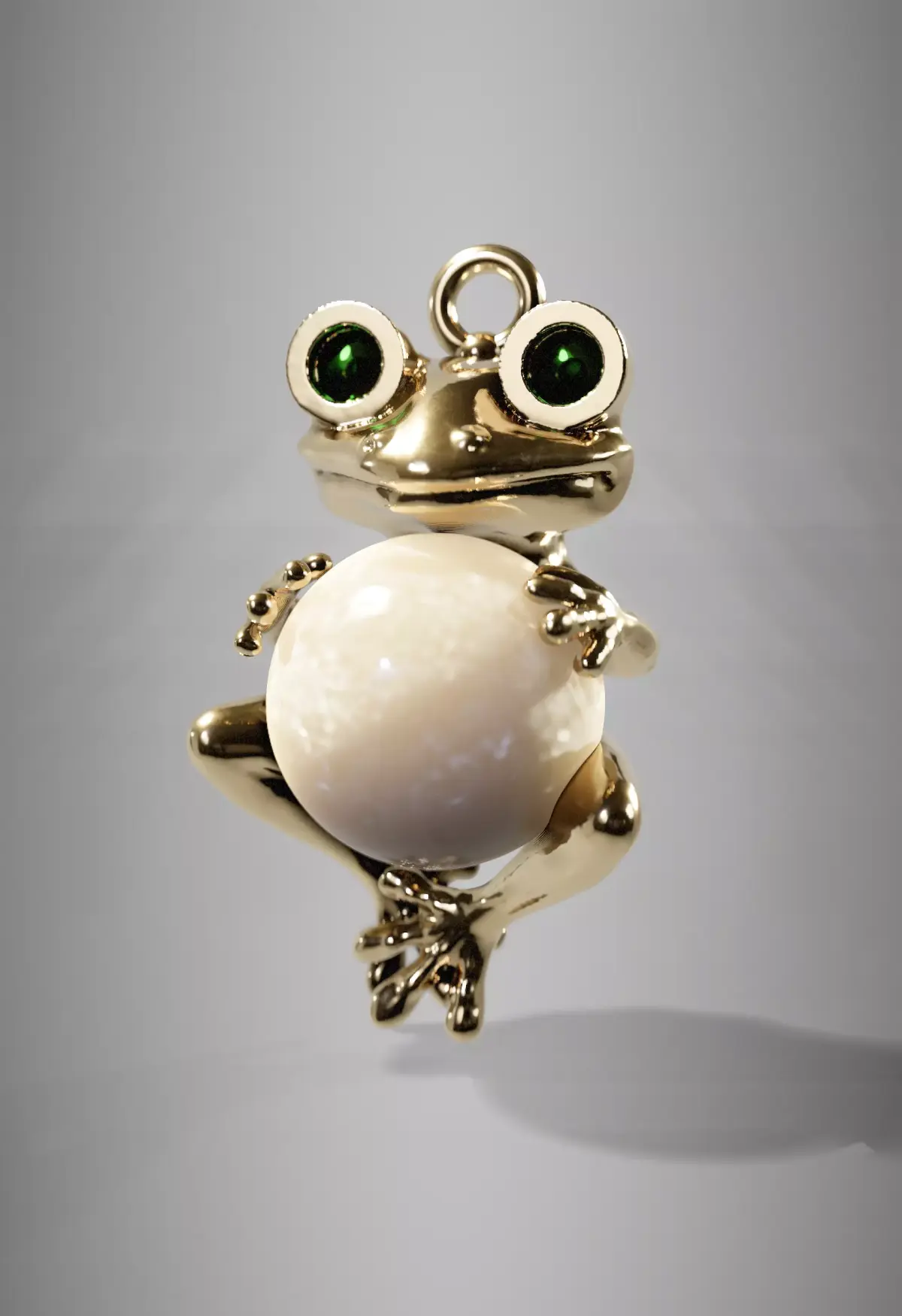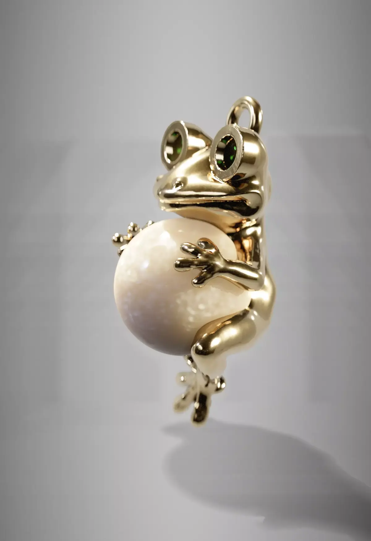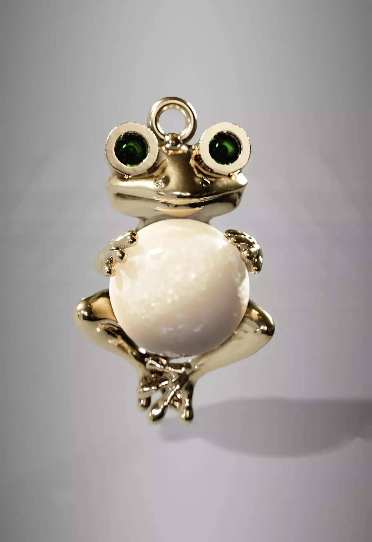 Guardian of Fortune Jewelry Pendant — Golden Frog with Pearl & Emeralds Natural Spherical Pearl Accent Stones: 2 Emeralds (Natural or Hydrothermal)