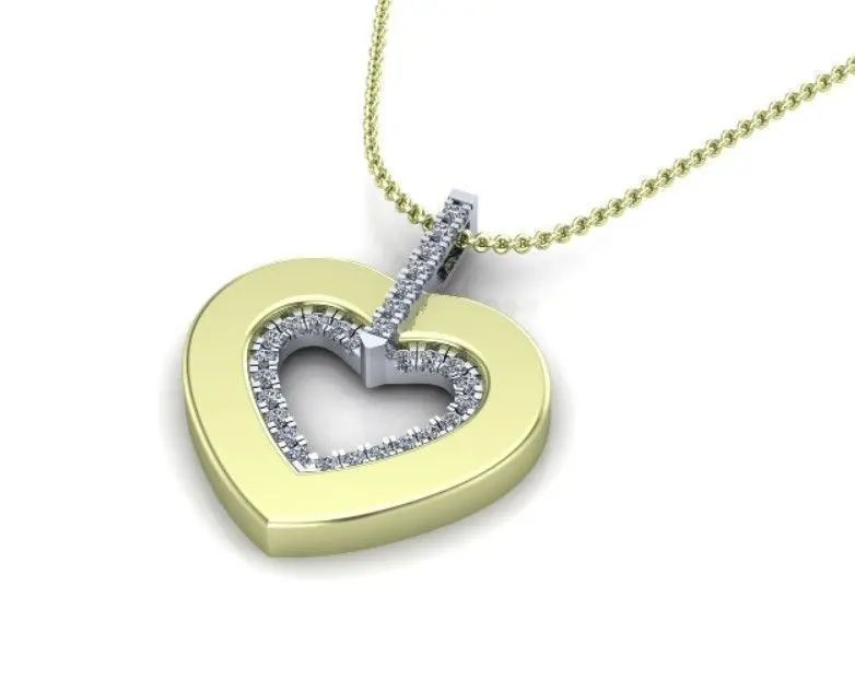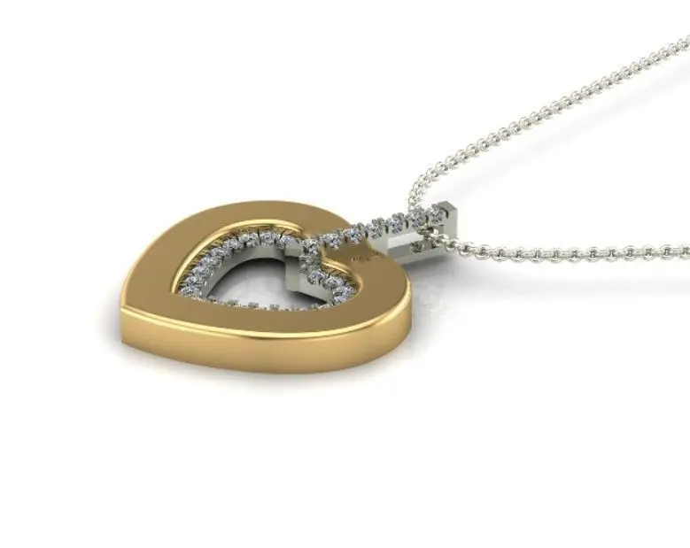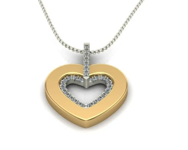 I present to you a heart pendant. the product is ready for printing.## WEIGHT 4GRAM 14 k GOLD # BRILIANT 22 X 1.MM 7X 1.1 MM ### Let your heart shine: Diamond Heart pendant A timeless symbol of love, affection and self-expression, the Diamond Heart Pendant will add a touch of dazzling elegance to any occasion. Whether you're celebrating someone special, pampering yourself, or simply looking for a piece that reflects your radiant personality, this exquisite pendant is sure to captivate hearts.