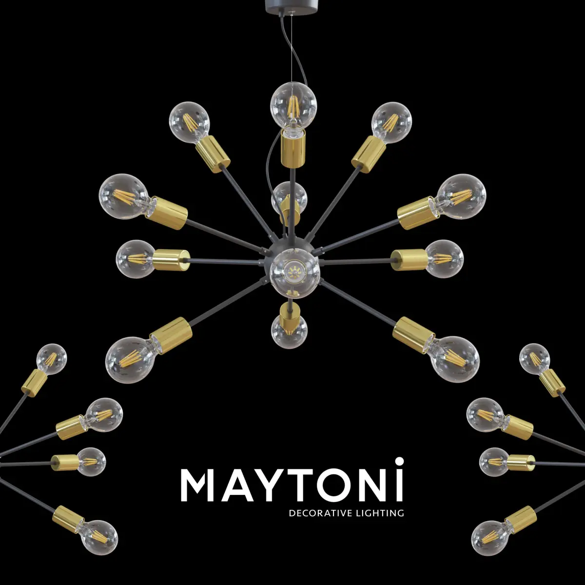 Pendant Jackson T546PL-12B Maytoni LOFTMetal frame with black finish. Lamp bases in brass colour for a nice loft styleDiese Leuchte im Loft-Stil besticht durch einen schwarz beschichteten Metallrahmen und messingfarbenen Lampensockeln.