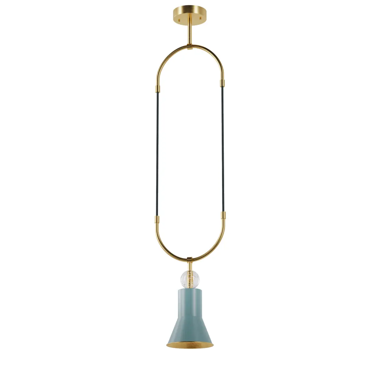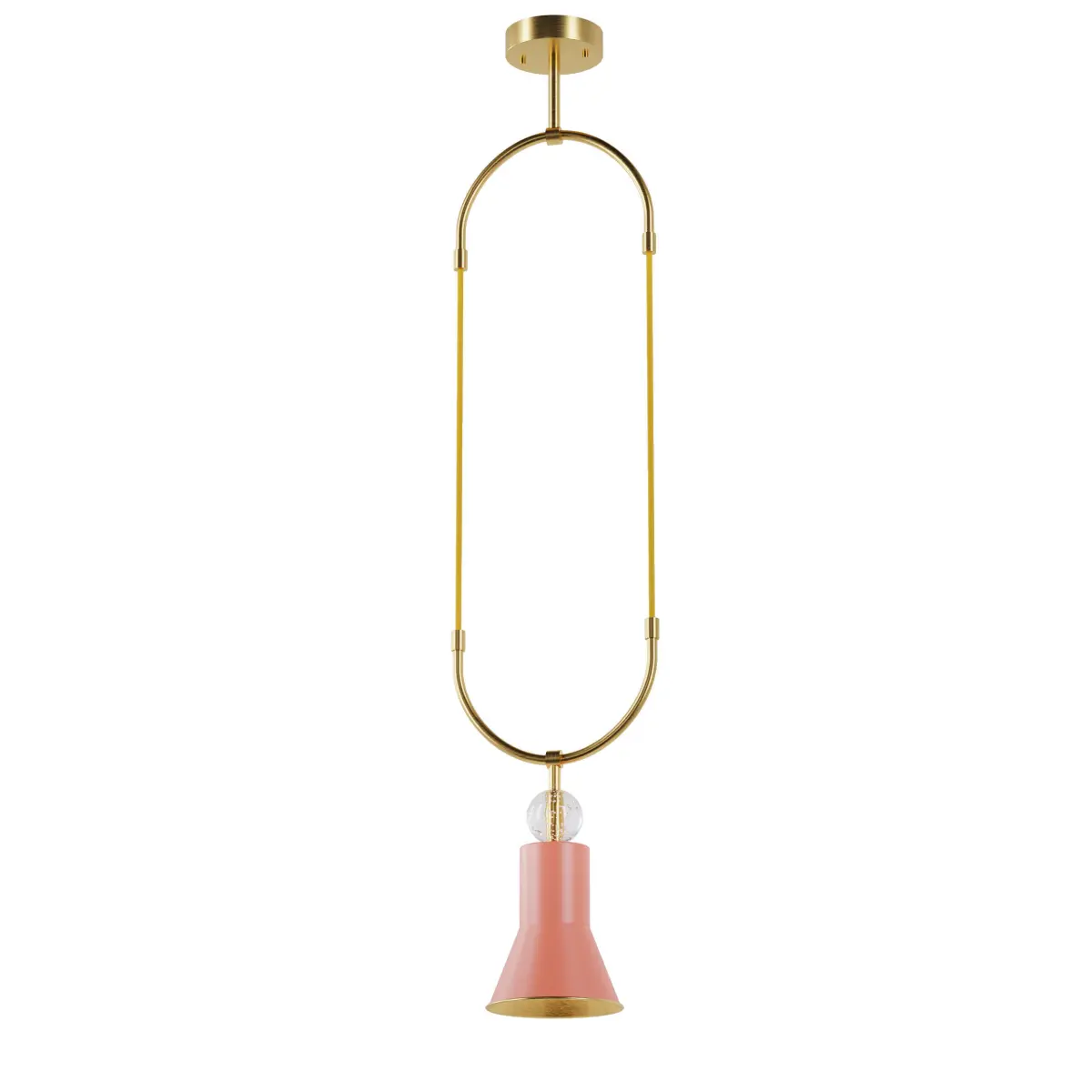 Pendant lamp ARCH 1U, SKU.13169 by Pikartlights.The brass ARCH 1U pendant is another striking model in the ARCH series, inspired by the sunny mornings of Italy. The design concept aimed to convey the architectural motifs of old Italy: the smooth curves of arched bridges, arched windows and gates, the inner vaults of temples adorned with gold, and the stained glass of famous masters. The design of the ARCH collection: Krzysztof Kowalski.The elegant pendant is made of high-quality materials: steel shades and delicate oval brass frames. The composition is adorned with a delicate glass ball, handcrafted by glass artists. The brass elements of the ARCH series combine particularly well with bright colors. The pendant is available in the following shade colors: exquisite gold, classic black, delicate pink, vibrant coral, and calm blue-green. The series looks incredible in combination with woven textiles, velvet, wood, and oriental ornaments. It perfectly emphasizes both a bright eclectic interior and a restrained classic one.How stylishly a set of three pendants of different lengths enriched a minimalist interior in pastel colors, and the golden brass arches play with the faucet and add life to the kitchen.The pendant is made in three standard mounting height sizes. Thus, it can be used as a single element or to create a composition with chandeliers of different heights. The universal design of the pendant allows it to be used in any room: in the kitchen, in the living room, in the bedroom, and especially in commercial premises. The ARCH series can be seen in many cafes and restaurants in Lviv.In the bedroom, the pendants should be placed on either side of the bed, and over the dining table, a set of three lights will look best, emphasizing the central zone of the table. Boldly combine the pendant with mosaic tiles or aged walls, fur elements, and live plants in Mediterranean-style or fusion interiors.Made of brass, glass, and steel, available in 5 colors. For more information please check the product page: