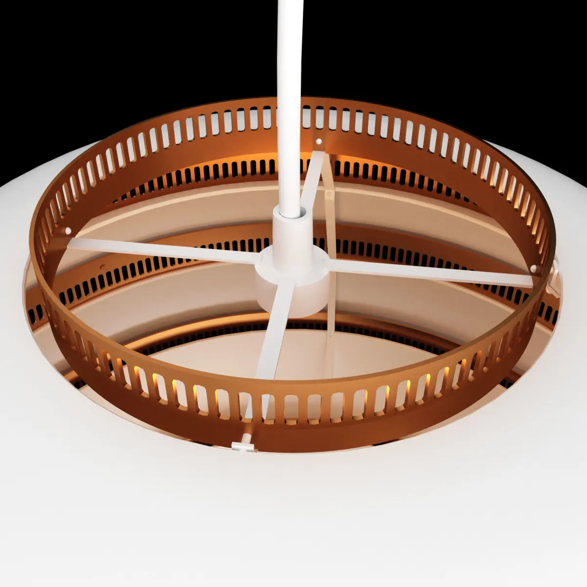 True to its nickname, “Beehive” retains its distinctive sculptural presence even when unlit and was originally designed for Finland’s University of Jyväskylä in 1953."