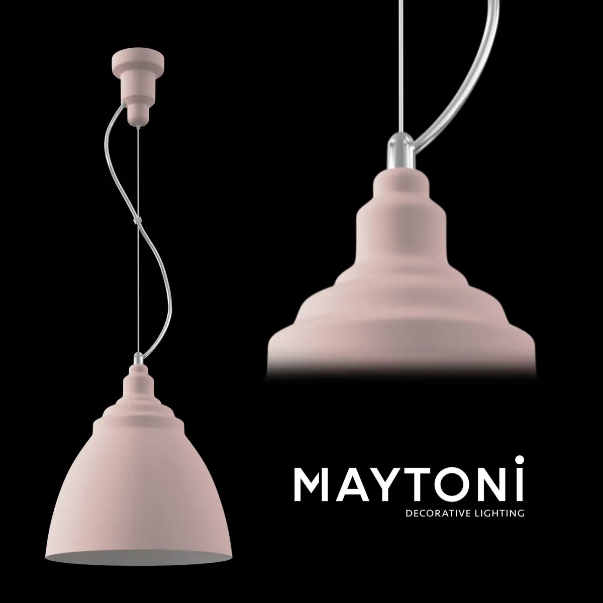 Series: BellevueCollection: PendantStyle: Maytoni ModernType of lamp: Pendant LampColour: PinkBottom diameter, mm: 250Height, mm: 205Material of shade: MetalColour: PinkFrame material: MetalHeight, mm: 260Height with suspension mount, mm: 1760Diameter, mm: 250Number of bulbs: 1Cap: E27Power: 60W