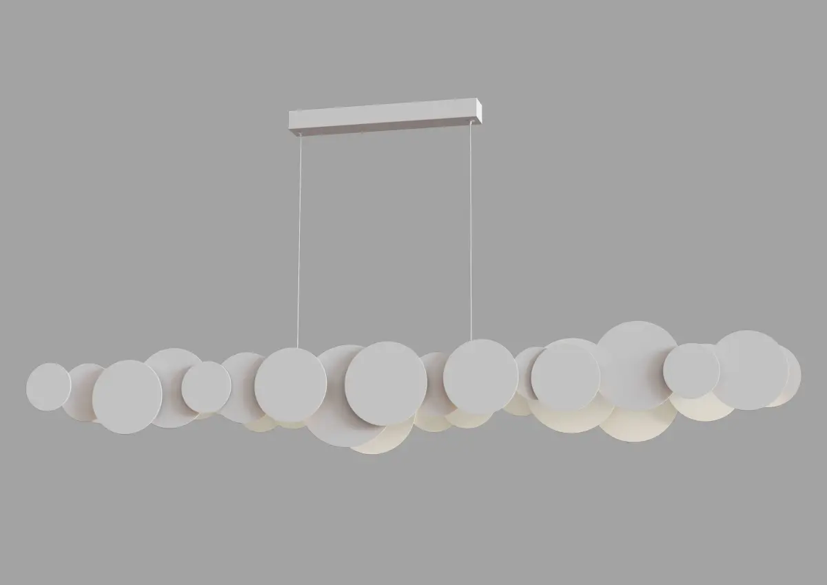Series: CloudCollection: ModernStyle: Maytoni ModernType of lamp: Pendant LampColour: White with SilverFrame material: AluminumHeight , mm: 180Height with suspension mount, mm: 1340Width, mm: 1500Depth, mm: 80