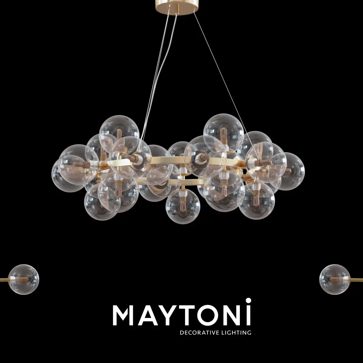 Series: DallasCollection: ModernStyle: Maytoni ModernType of lamp: Pendant LampColour: GoldLampshade diameter: 100Height, mm: 100Material of shade: GlassColour: AmberFrame material: MetalHeight , mm: 238Height with suspension mount, mm: 1438Diameter, mm: 690Number of bulbs: 25Cap: G9 Power: 28W