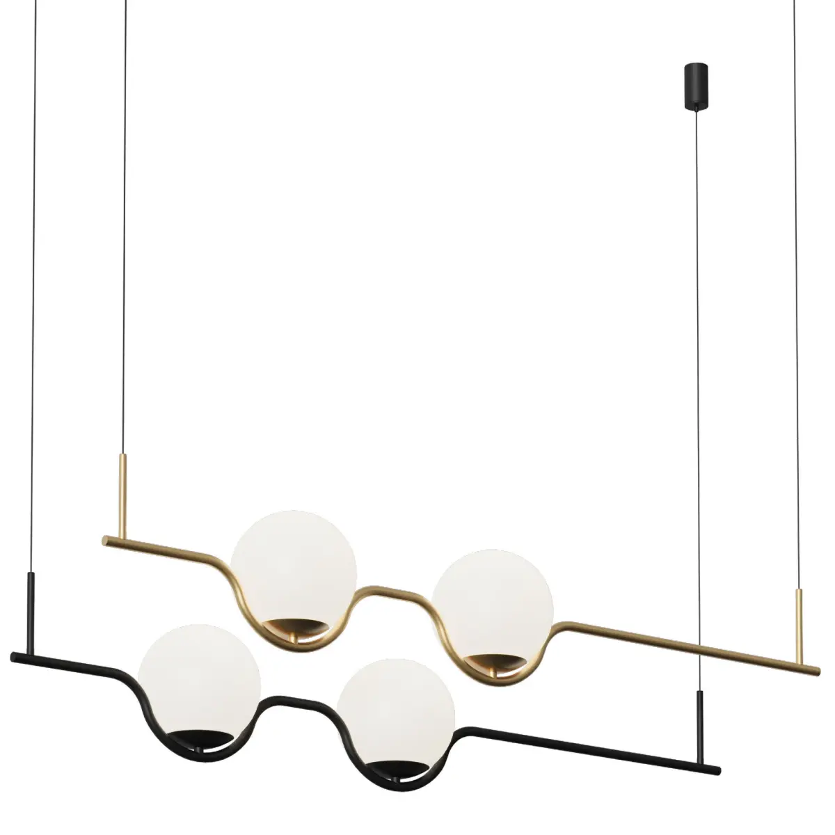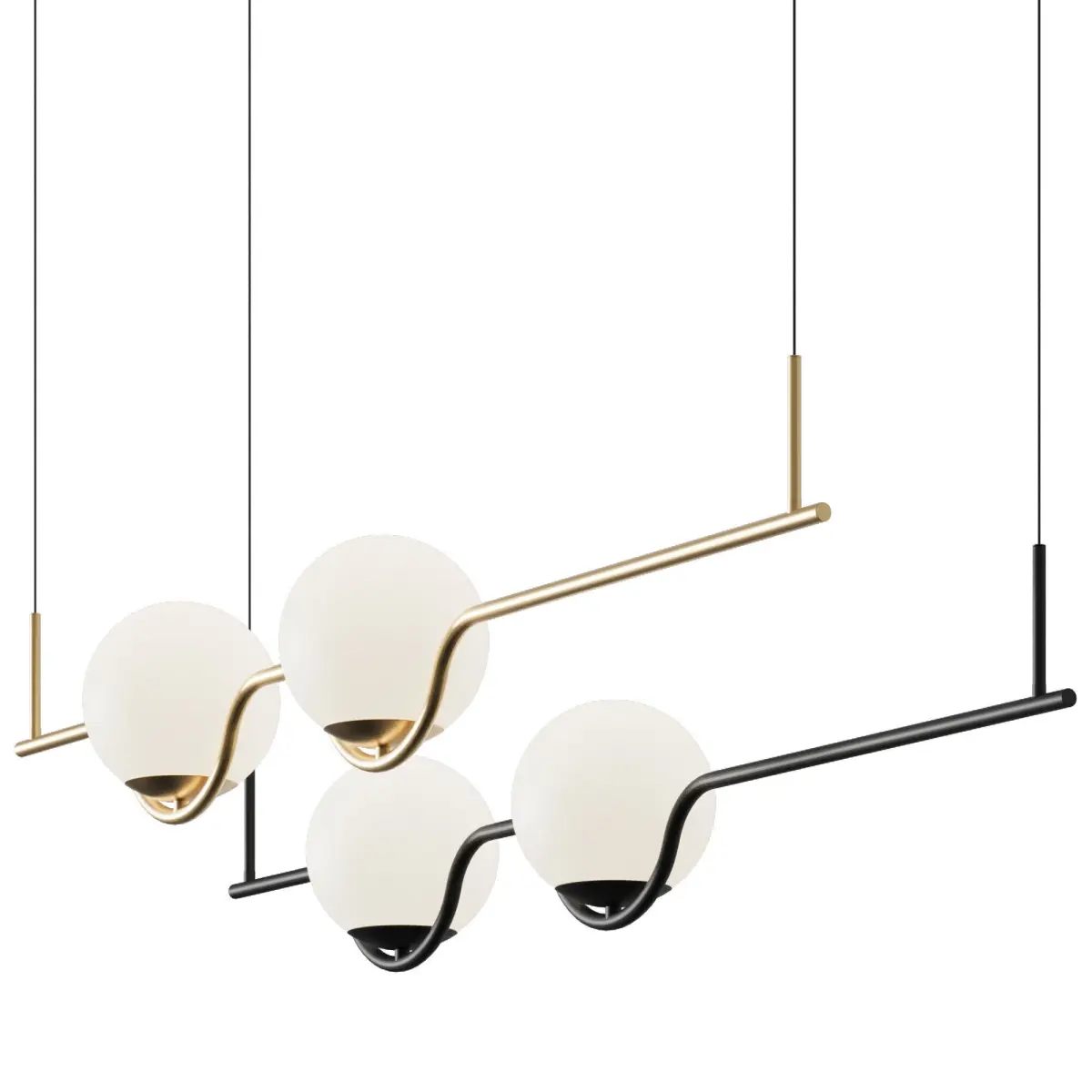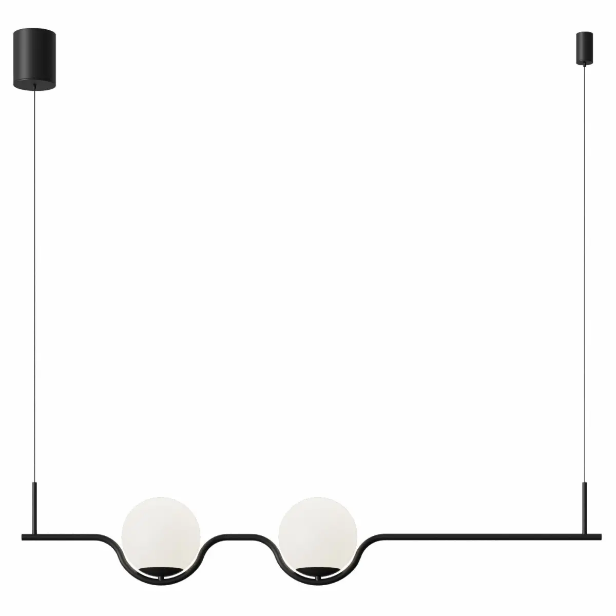 The design of the lamp is based on a balance of light and emptiness: compact light balls gently diffuse the warm LED glow, creating a cozy atmosphere. The model can be used both in a single version and in a group — it is ideal for linear compositions above a dining table, a kitchen island or a reception desk.