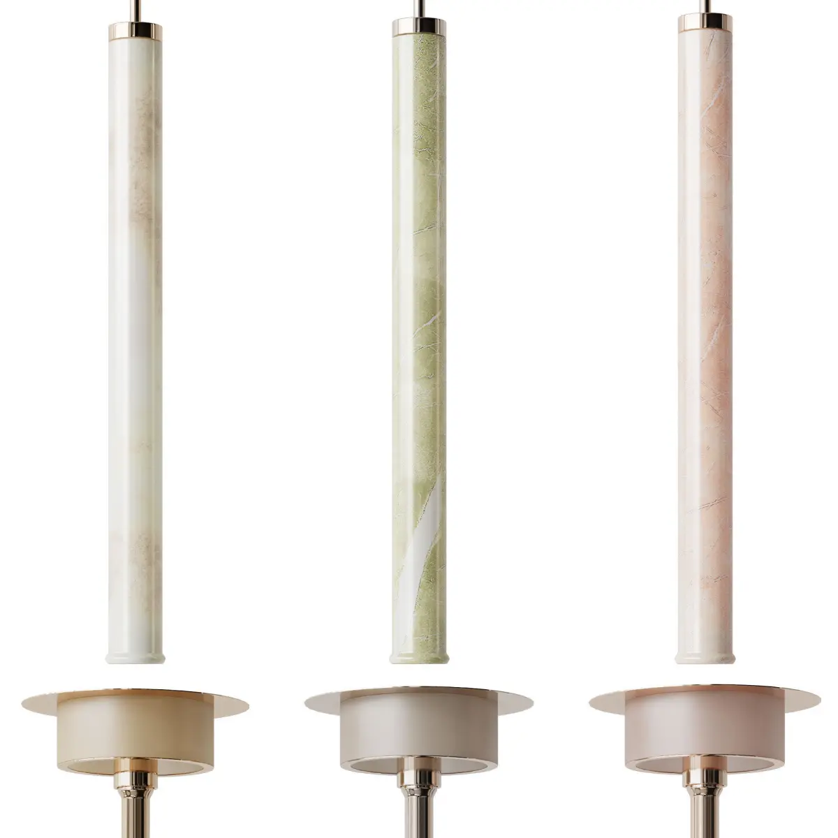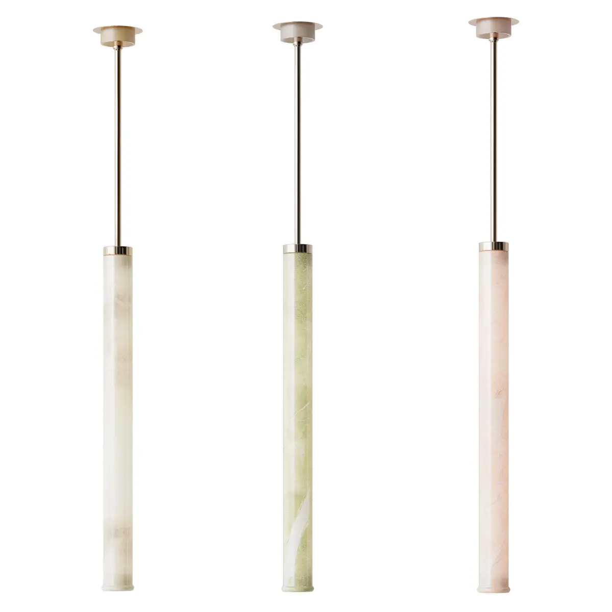 White, Pink or Green Onyx / Golden Brass, White Nickel or Pink CopperD 7.5 x H 75 cm / Total height up to 177 cm adjustableD 2.9 x 29.5 / 69.7 inches