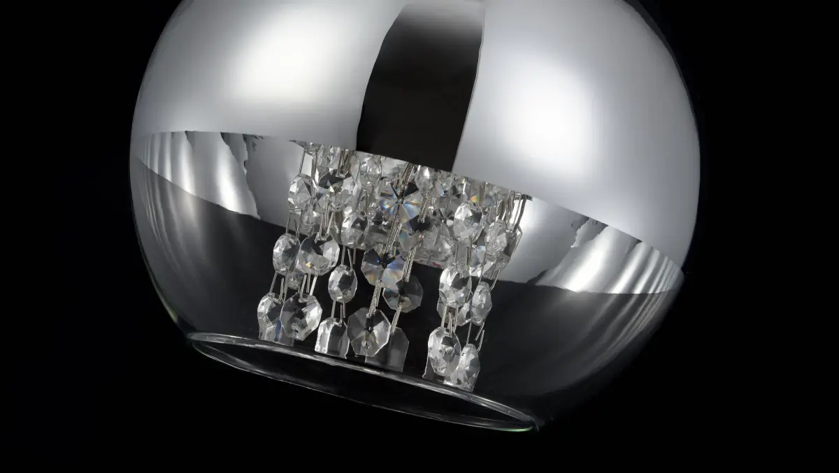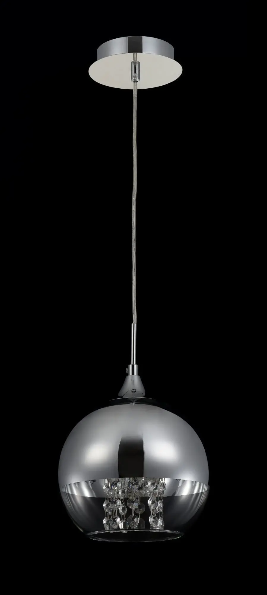 Series: FermiCollection: PendantStyle: Maytoni ModernType of lamp: Pendant LampColour: NickelLampshade diameter: 200Height , mm: 175Material of shade: Glass and MetalColour: TransparentFrame material: MetalHeight , mm: 175Height with suspension mount, mm: 875Diameter, mm: 200Number of bulbs: 1Cap: E27