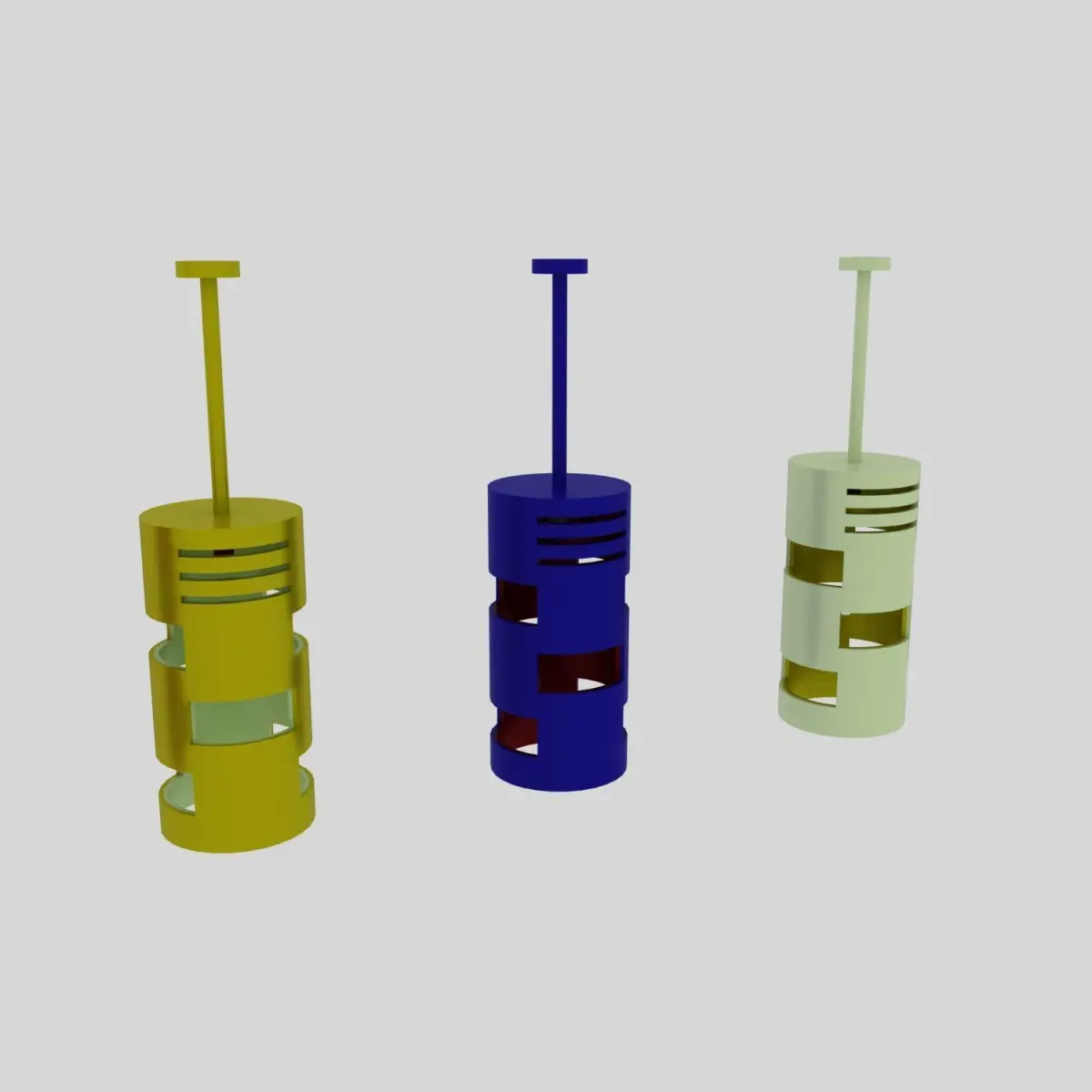 Beautiful and well-designed pendant lamps in four colors: red, blue, white and yellow that can be used at home, at work, in the living room, in the bedroom, Special environments, etc.