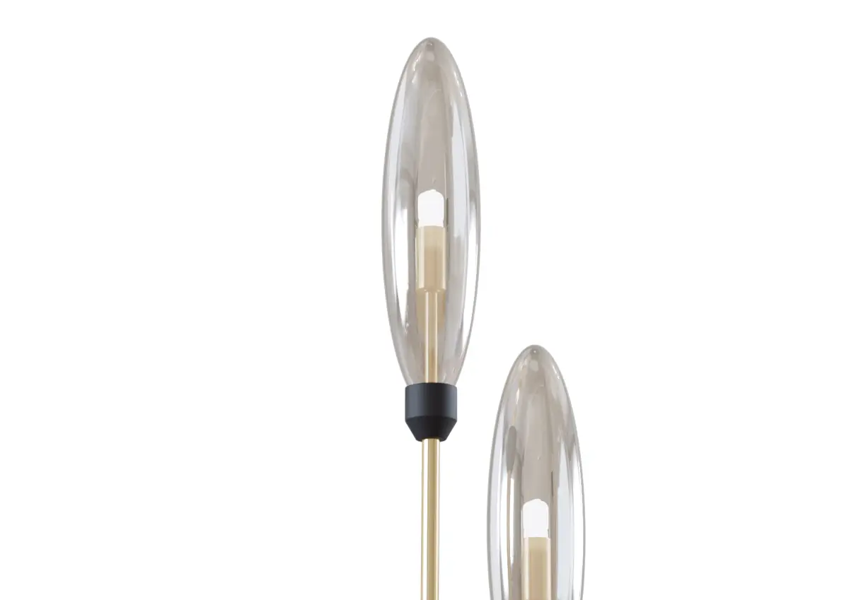 Metal frame. Amber glass diffusers.Metallgestell. Ungewöhnliche Form der Lampenschirmen. Lampenschirme aus Bernsteinglas.