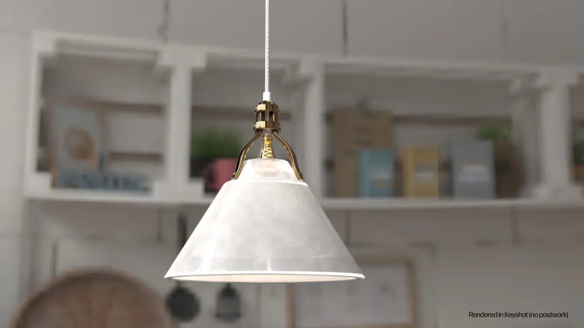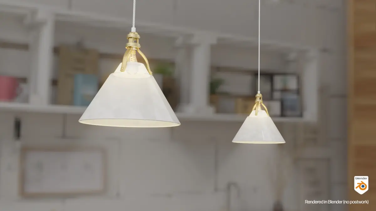 Uses Cycles and a Volume fog cone x2 to get the light glow coming from the shade.