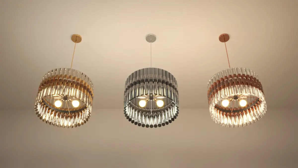 Modern design pendant light compnation of galss and metal (gold, chrome, copper) very cool in your interieor design sense, in loving room, kitchen, or any other cozy palce you like. modeled by 3ds max 2021 / v-ray 5