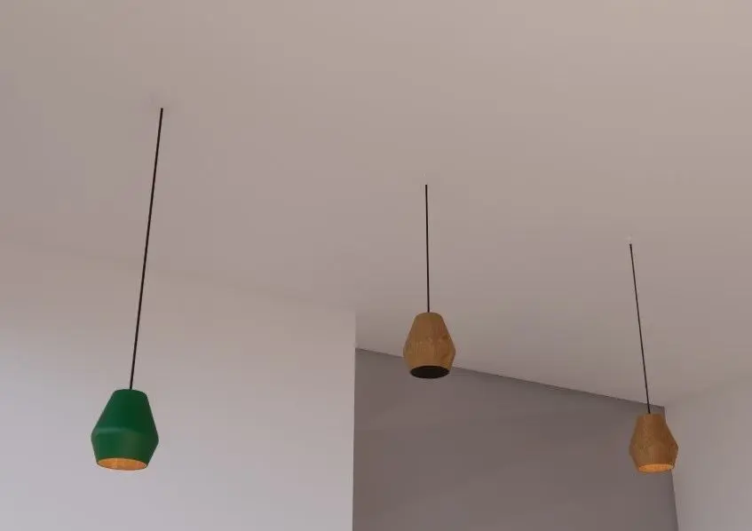 Small pendant light - Bell Style. Revit Native 2019 version. Adjustable cord length by instance.Inner and Outer Surface Materials can be changed seperately. Light source internally to glow. lighting family, ceiling hosted.