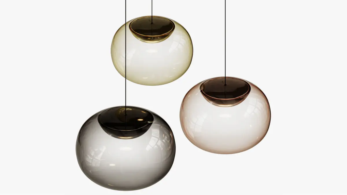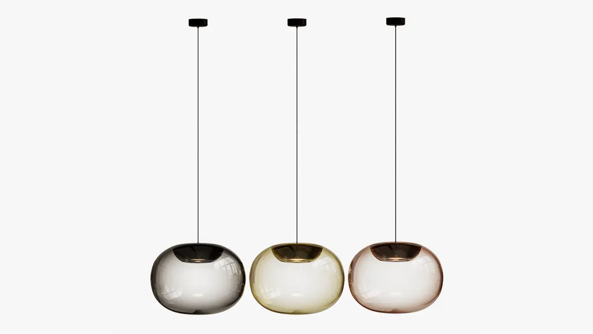 Very light, this light consists of a transparent blown glass diffuser, slightly tinted with smoked grey and a metal structure below which is integrated the light source. This composition makes it possible to diffuse a soft and warm light without glare thanks to the integration of the LED module in the metal structure.