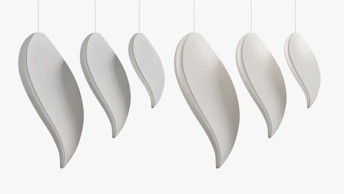 The collection includes a variant of two separate sizes, and of lamps arranged in a group of various shades.The Lunaria pendant light was created by the NIRUK studio for the Bolia brand.This pendant light of Japanese inspiration offers a soft and milky atmosphere.The lampshade, inspired by Japanese lamps, is made of thin and translucent white fabric.