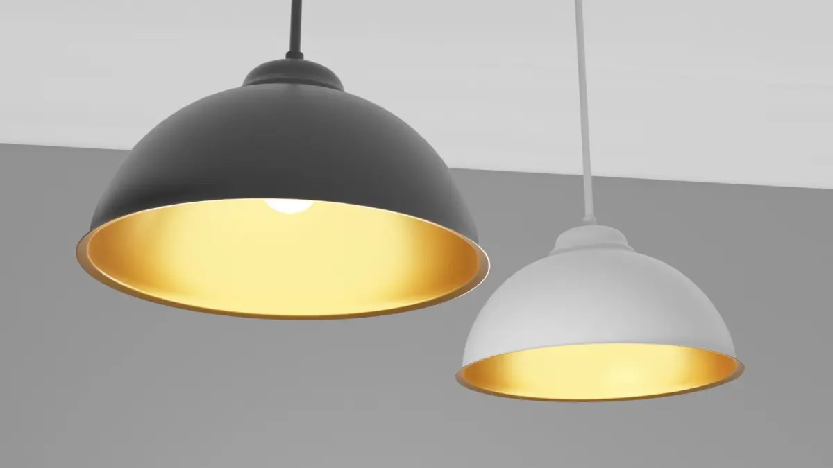 This is a great asset for any Arch-Viz scene. The light has a black semi-textured dome with a metallic gold reflective material on the inside.Included is a bulb with its fitting.There are two texture sets, black and white and each part is textured according to the original product. The model only has one material which makes it extremely easy to set up in most 3D software/applications.The model is to scale (inside Blender that is) 1100 X 370 X 370.