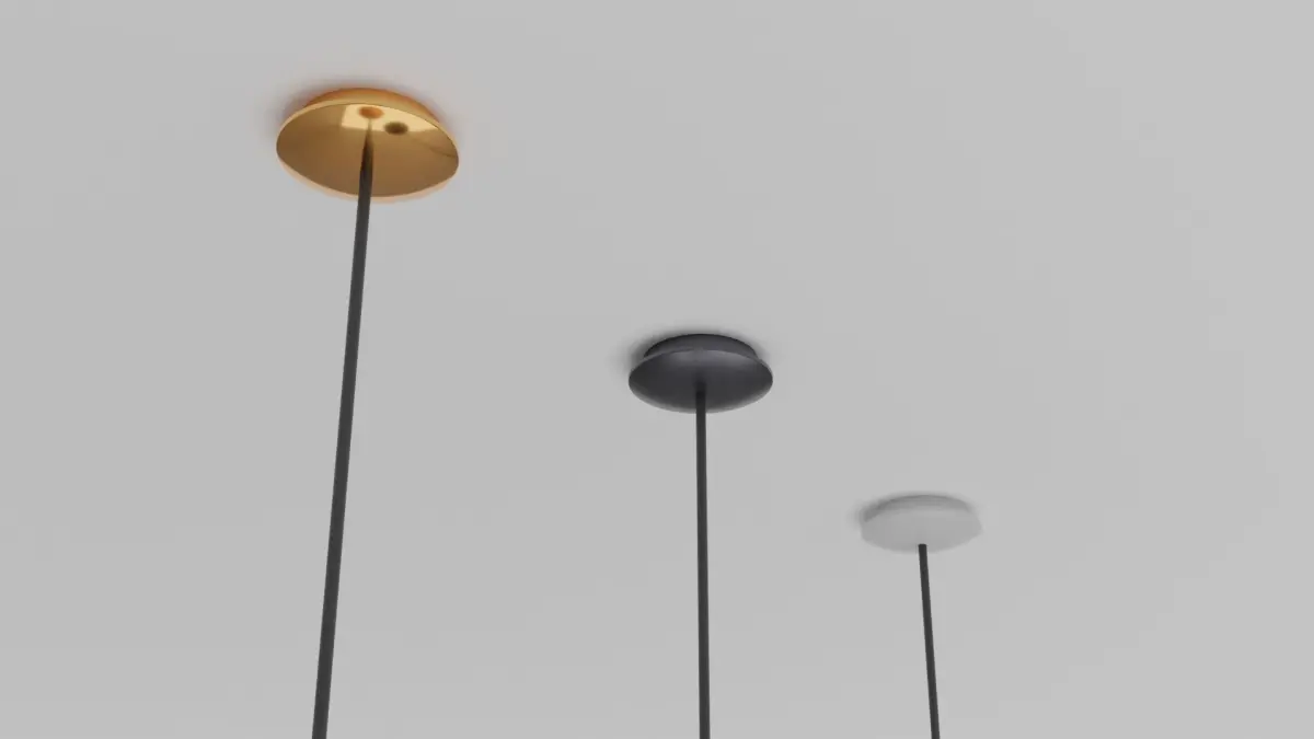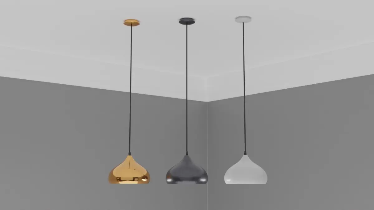 This pendant light is ideal for any Arch-Viz or game engine. It has a Gold, Black and White finish with a gold metallic reflective material on the inside. It has one material for the light with non-overlapping UVs. Included is the bulb and bulb fitting. The Blender file has been packed and contains the materials and textures ready to use out of the box. It is modelled to scale: 1160mm X 290mm X 290mm Ceiling fitted with electrical wire. This model is based on a real model and will fit in any modern style setting.
