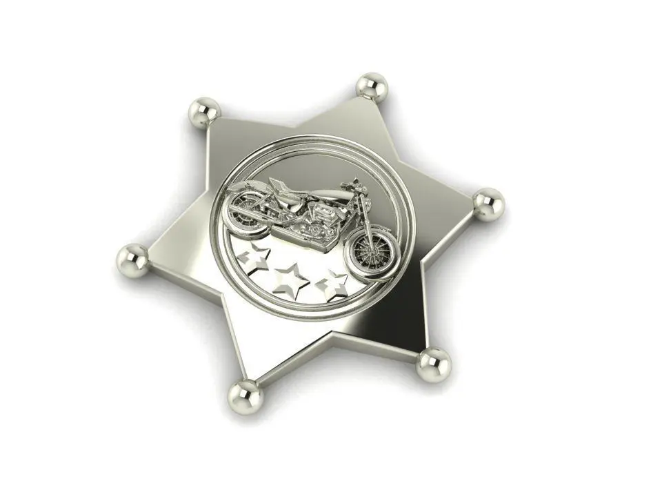 UNIQUE PERSONALITY HARLEY DAVIDSON MOTORCYCLE STAR POLICE CHIEF BADGE MODEL. CAN BE MADE AS A PENDANT OR BADGE, STAR DESIGN 0.7MM THICK, SIZE IN PICTURE SECTION.