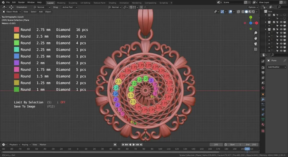 Gem Cut Size (mm) Carats Qty Sum (ct)Diamond Round 2.75 0.076 16 1.216Diamond Round 2.5 0.057 3 0.171Diamond Round 2.25 0.043 4 0.172Diamond Round 2.25 0.046 1 0.046Diamond Round 2.25 0.042 1 0.042Diamond Round 2.0 0.029 3 0.087Diamond Round 1.75 0.02 5 0.1Diamond Round 1.5 0.012 2 0.024Diamond Round 1.25 0.007 2 0.014Diamond Round 1.0 0.004 1 0.004Total 38 1.876