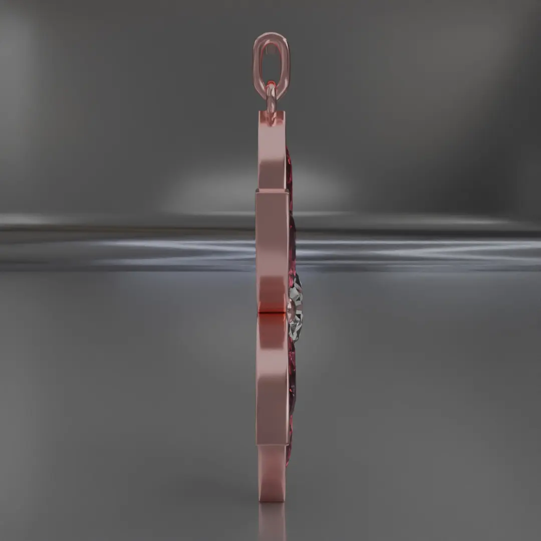 Design Concept:This pendant blends the soft elegance of rose gold, the passionate gleam of spinels, and the flawless sparkle of diamonds into a visual harmony that radiates sophistication.It’s not just a 3D model — it’s a virtual jewel, symbolizing love, luxury, and artistic vision.