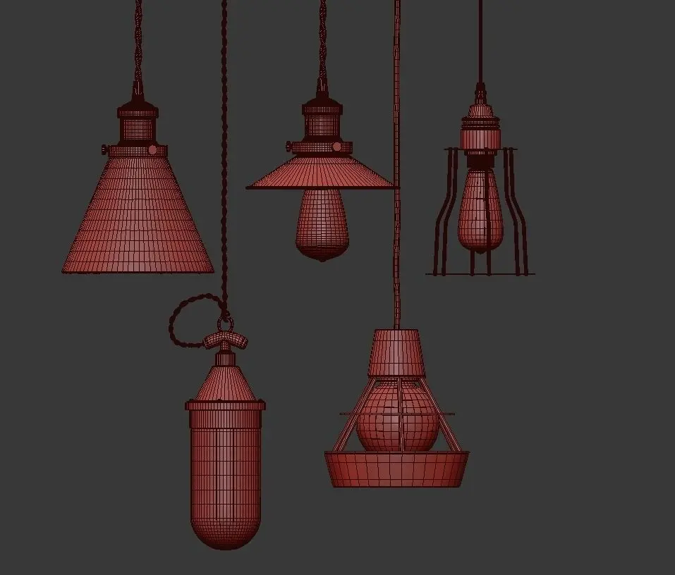 PENDANT SET 13. Сollection of pendant lamps in loft style. Suitable for apartments, houses, cafes and restaurantsThe model includes: .MAX, .FBX, .MTL, .OBJ files. Attention! High-poly model. Save the 3D scene before importing.