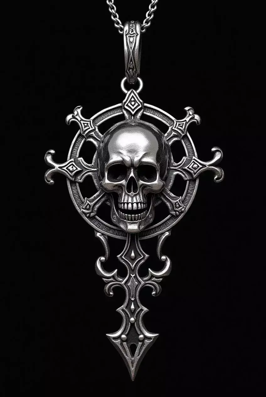 This premium Skull Cross Gold Pendant is a bold and powerful jewelry design crafted for those who appreciate gothic symbolism, strength, and luxury craftsmanship. The pendant features a highly detailed human skull placed at the center of an ornate cross-inspired circular framework, blending dark gothic aesthetics with refined gold elegance. Designed in realistic 3D detailing, every curve, edge, and surface is carefully sculpted to achieve a lifelike skull structure—prominent cheekbones, deep eye sockets, sharp teeth, and a polished cranium finish. The surrounding cross elements showcase symmetrical ornamental engravings, giving the pendant a strong architectural presence and a premium handcrafted look.This model is converted into yellow gold with a rich metallic shine, ideal for 18KT / 22KT gold jewelry production, hip-hop jewelry, luxury gothic collections, biker jewelry, or custom statement pendants. The bail is proportioned for standard chains, making it practical for real-world manufacturing.