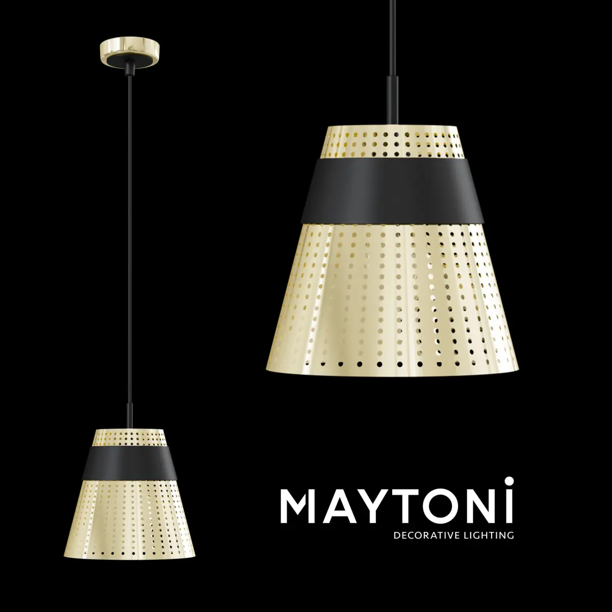 Pendant Trento MOD614PL-01BS Maytoni ModernFrame and decorative lampshade made of perforated metal with black decorative elements. Rahmen und dekorativer Lampenschirm aus perforiertem Metall mit schwarzen Zierelementen.Series: TrentoCollection: ModernStyle: Maytoni ModernType of lamp: PendantHeight, mm: 200Height with suspension mount, mm: 1700Diameter, mm: 175Height of the ceiling cup, mm: 20Diameter of the ceiling cup, mm: 90Number of bulbs: 1Cap: E27Power: 40 WFrame material: MetalColour: BrassLampshade:Height, mm: 165Material of shade: Metal