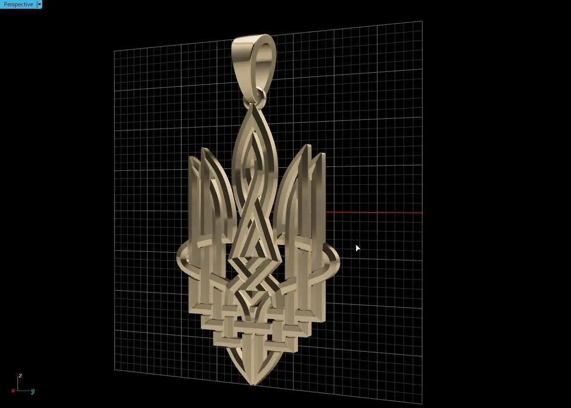 This is a 3D model of the pendant trident from a rhinoceros and Matrix. The size of the pendant is shown in the photo, the model of the pendant is ready for printing, the object is integral, weight: in gold 5.58 gr. silver 4.43 gr.