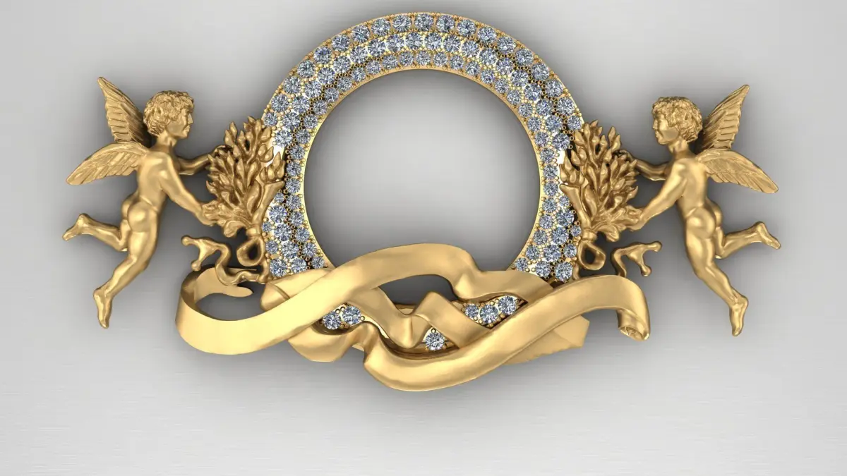 Pendant with Angels and diamonds, Cople Angels with the frame, also you can set any picture in the center it's gonna be nice gift, Recommended material - GOLD Any questions? Please contact me. Thank you!