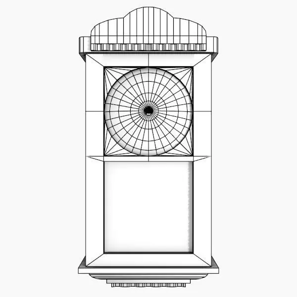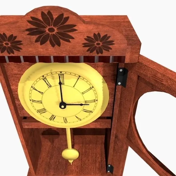 Detailed 3D model of a wooden pendulum clock modelled in Blender v2.66.1. The model is completed of textures and materials.The UV Layout in the ZIP - see folder 'UVLayout'.