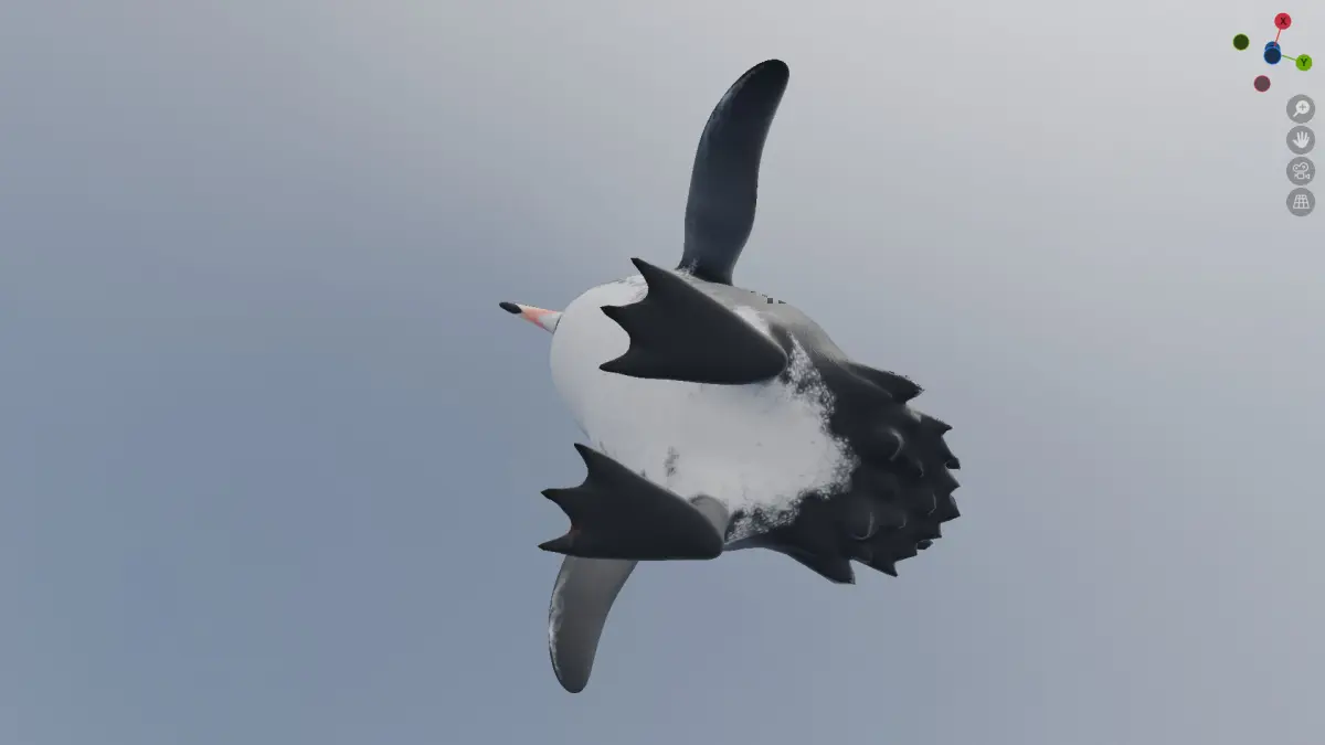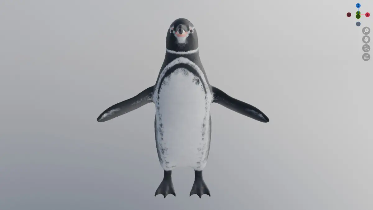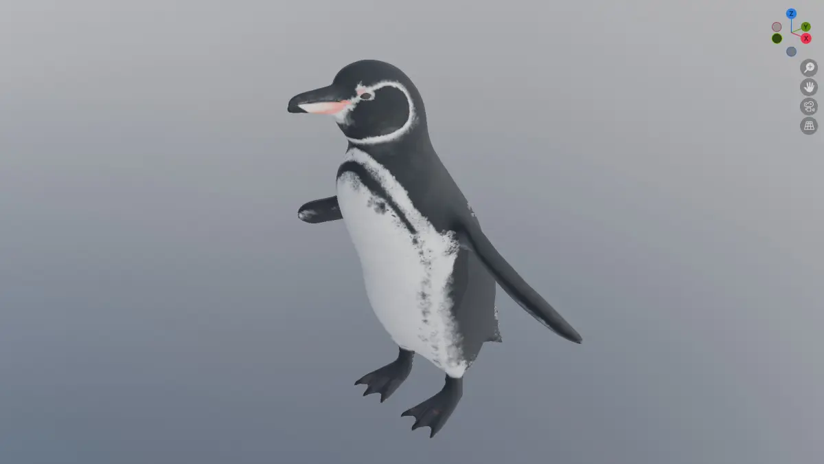 This is a mid-poly 3D model of a Galápagos penguin featuring clean topology and a fully unwrapped, non-overlapping UV map. The UVs are efficiently laid out to allow high-quality texturing with minimal distortion. The model is optimized for real-time applications and fully compatible with PBR workflows in Blender, Unity, and Unreal Engine.