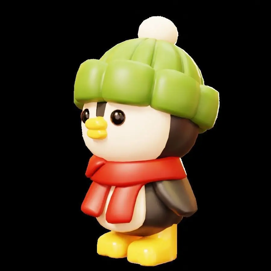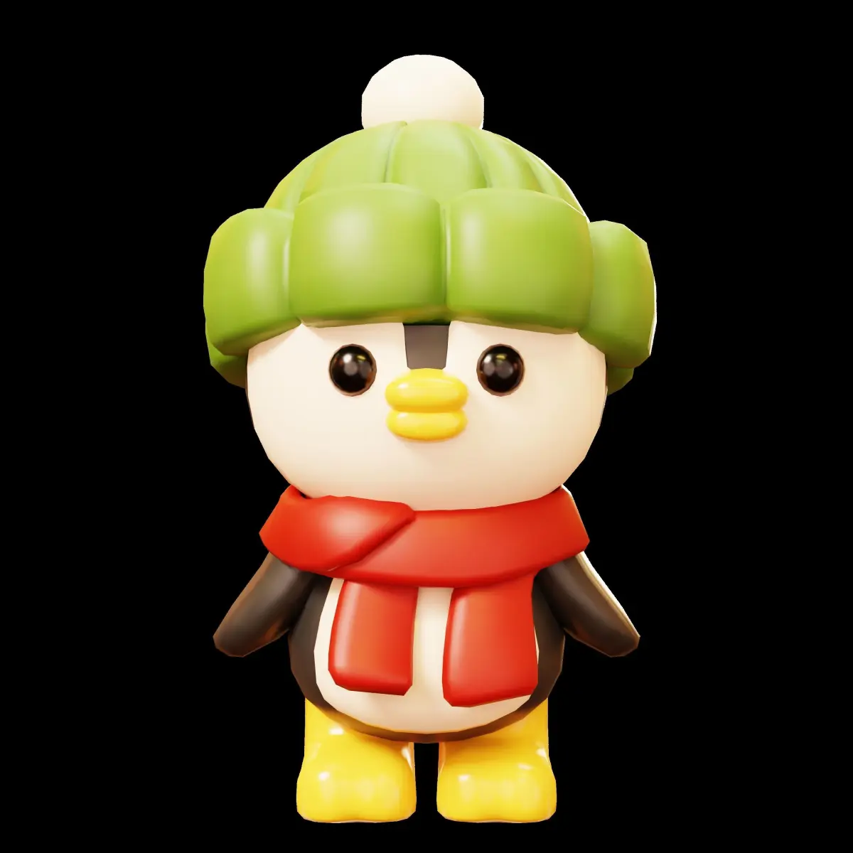 little penguin standing with a red scarf and green hat in Christmas theme. (No Rigged) low-poly and game-ready 3d model in cute cartoon style