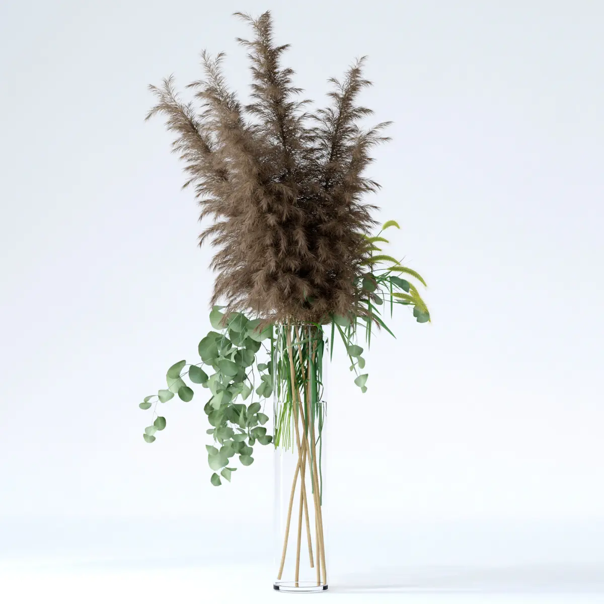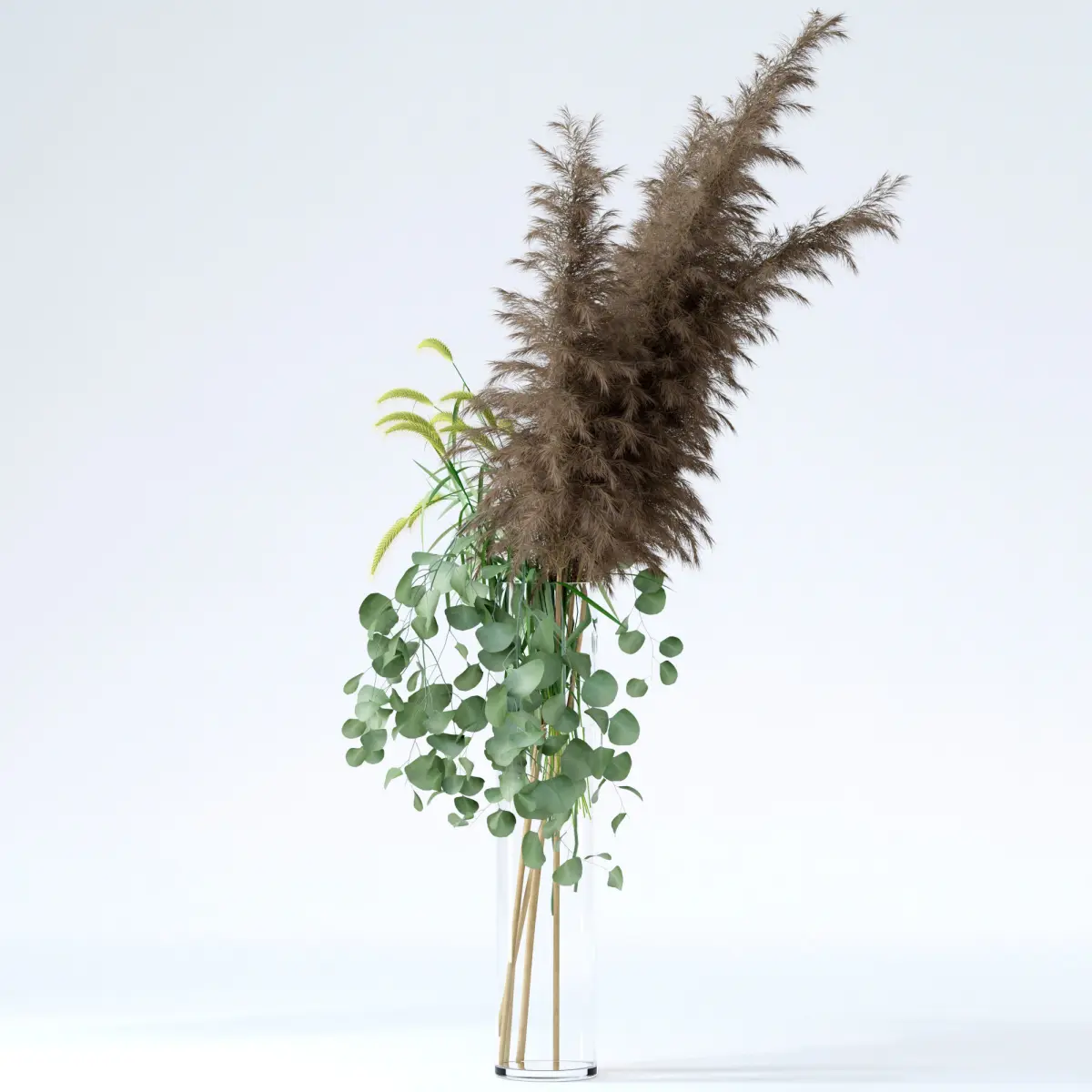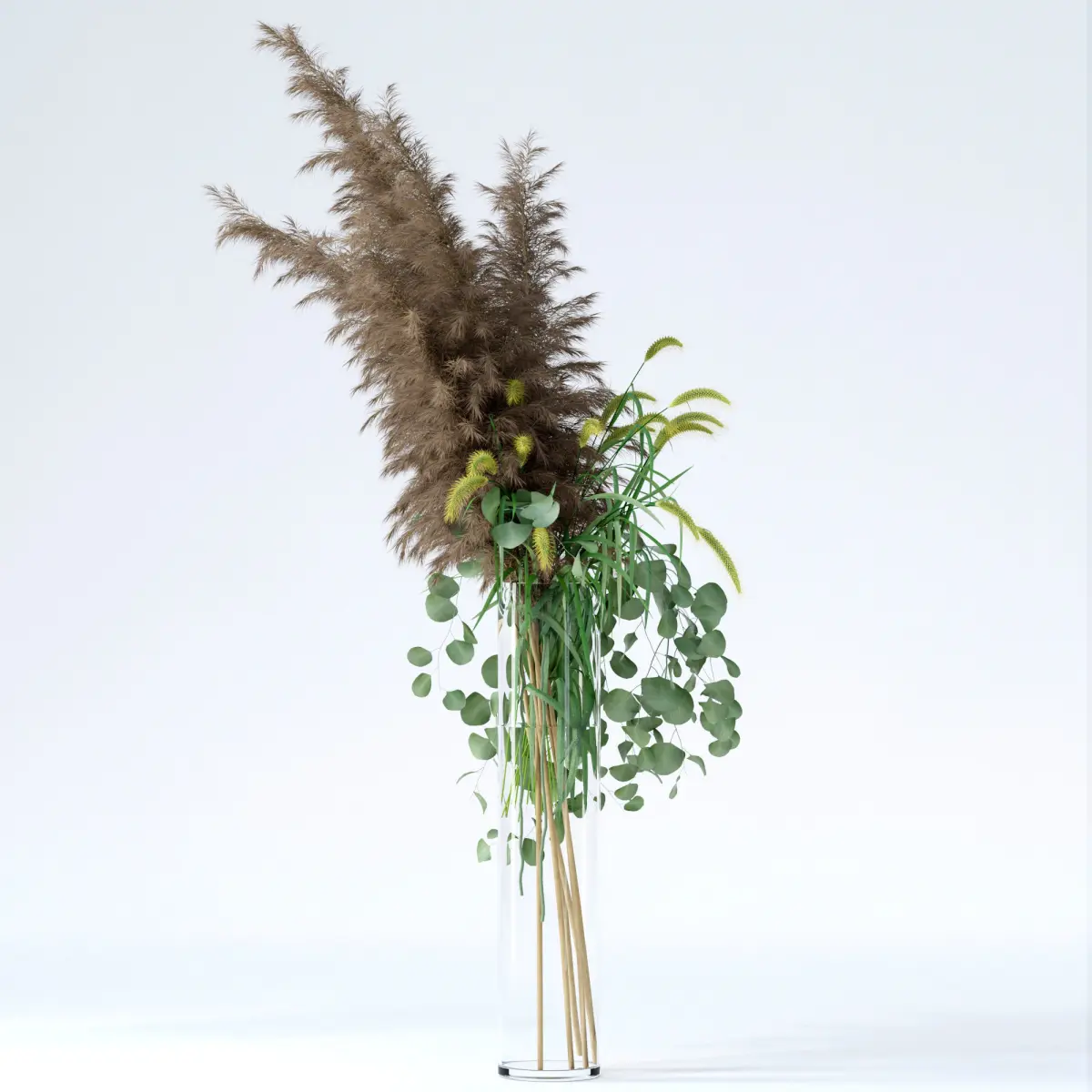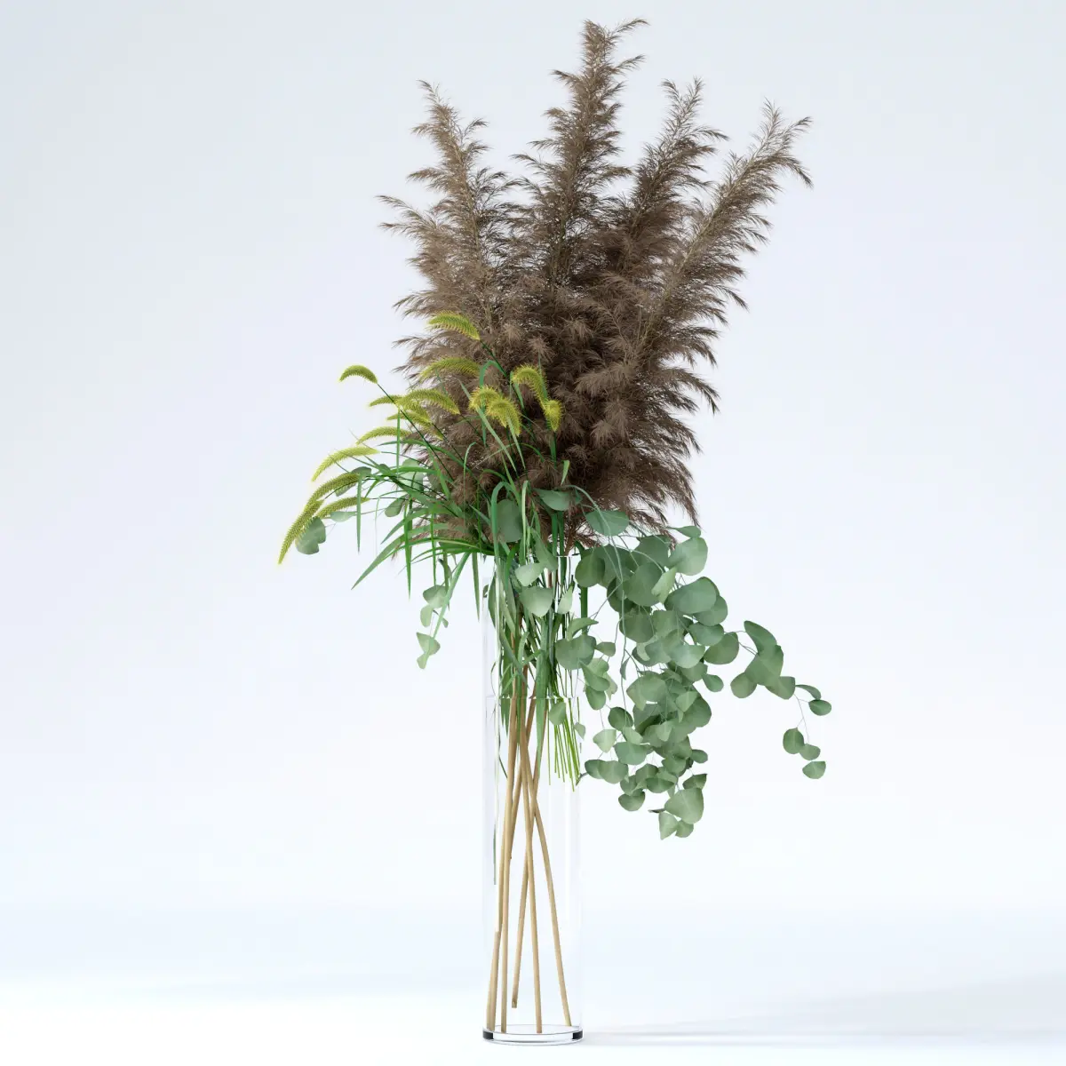 • Pennisetum (single mesh)• Pampas grass (7 separate branches)• Eucalyptus (2 separate twigs)• Vase&water