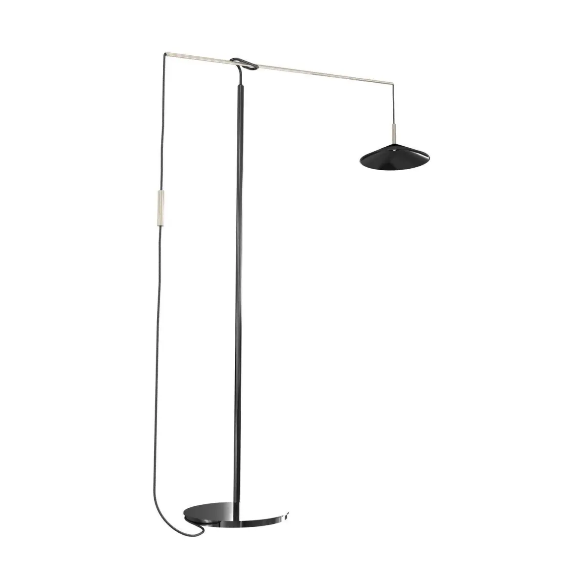 ALTURA | Floor lamp By PENTACollectionAlturaTypeLED metal floor lamp with dimmerManufacture year2019Product code1907-10DesignerAnonima Luci , Valerio SommellaAltura floor lamp with structure and shade in matt varnished black metal.Altura is a projecting floor lamp. Two thin rods, one vertical and a horizontal one made of steel, are connected by a joint. Lightweight materials and sophisticated technology contained within the cone-shaped lampshade.