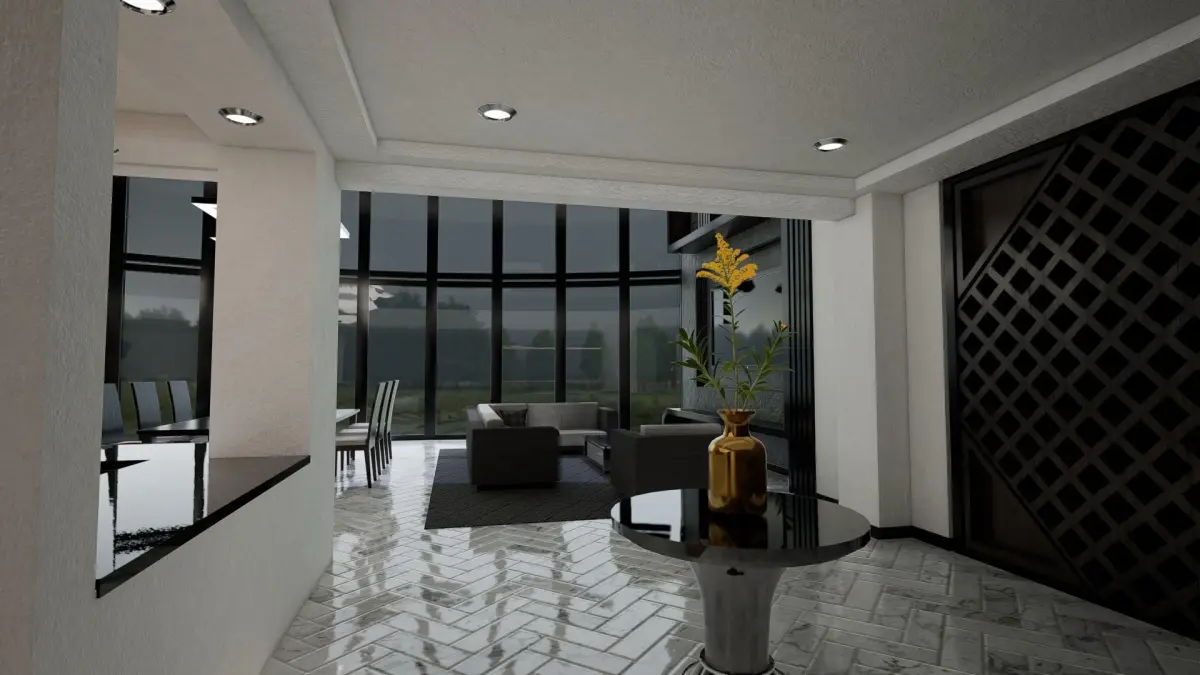 architectural design penthouse: nice project for architectural visual representation, renders made in Unreal engine, this penthouse modelcontains:9 matrials PBR and trim sheet 4k textures maya filefbx, obj, Daemost of the assets are separated for a better customization. Vase flower is just a preview, is not with the main model.