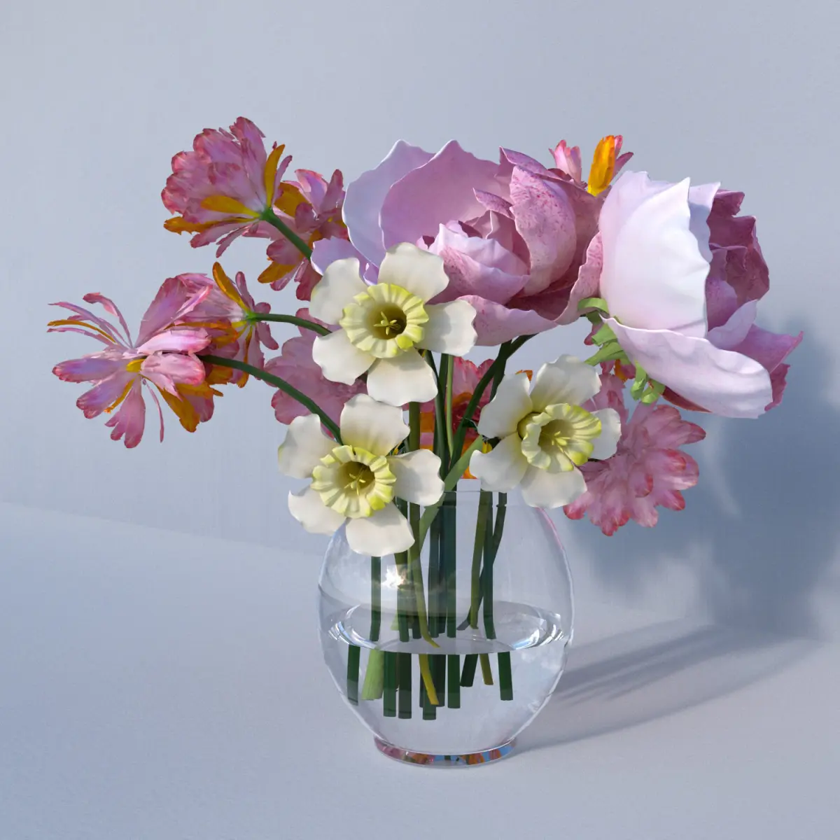 Peony Narcissus Flower set . Objects, materials and textures are logically named All objects are grouped All objects have Unwrap UVW File formats: